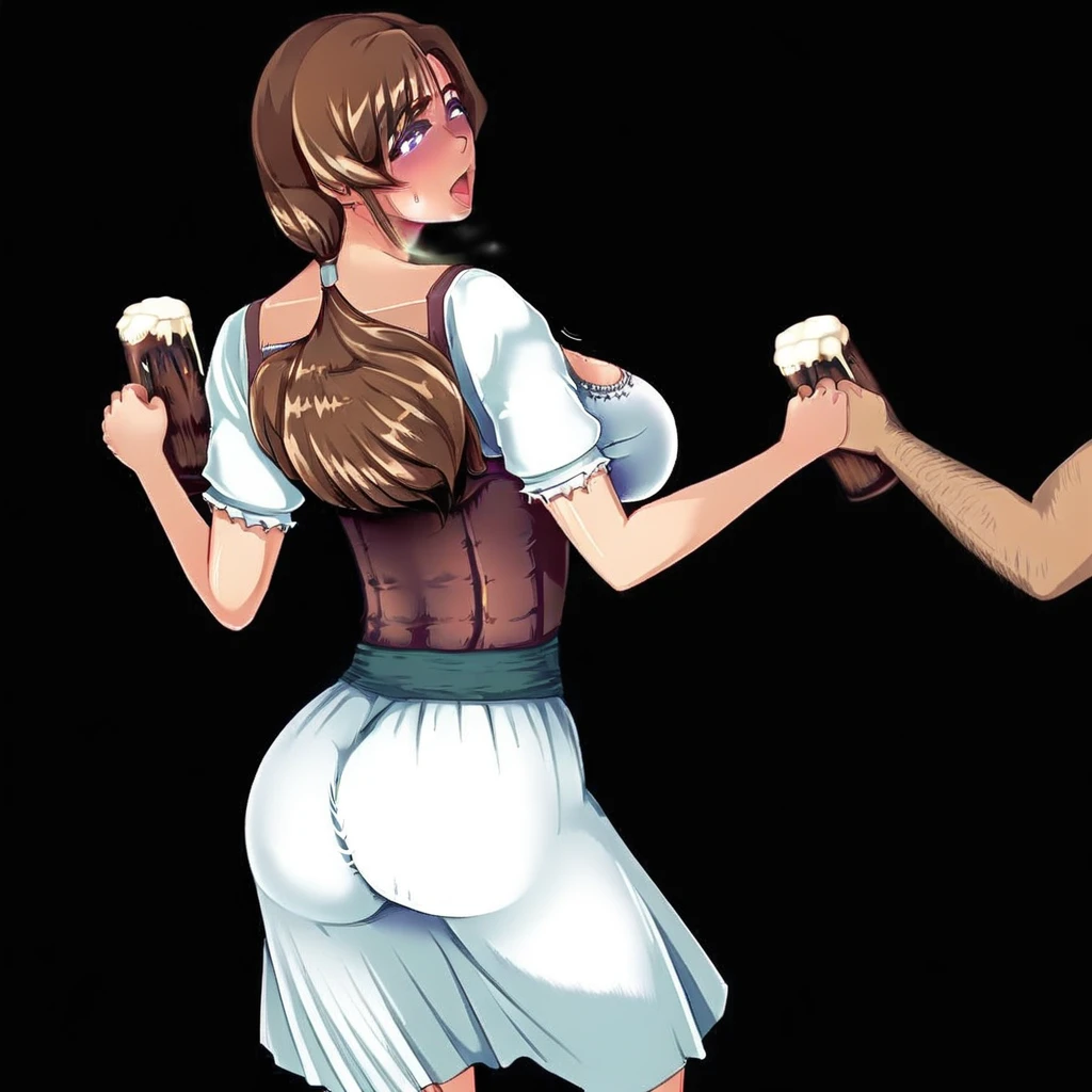 1girl, solo, brown hair, mature female, bra, thighhighs, panties, blush, long hair,