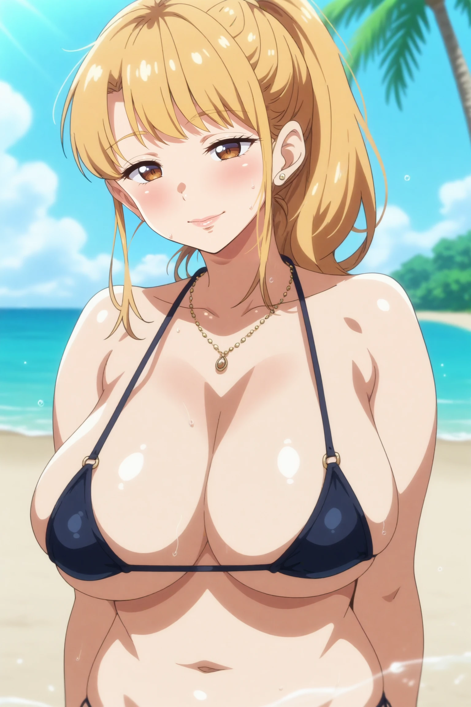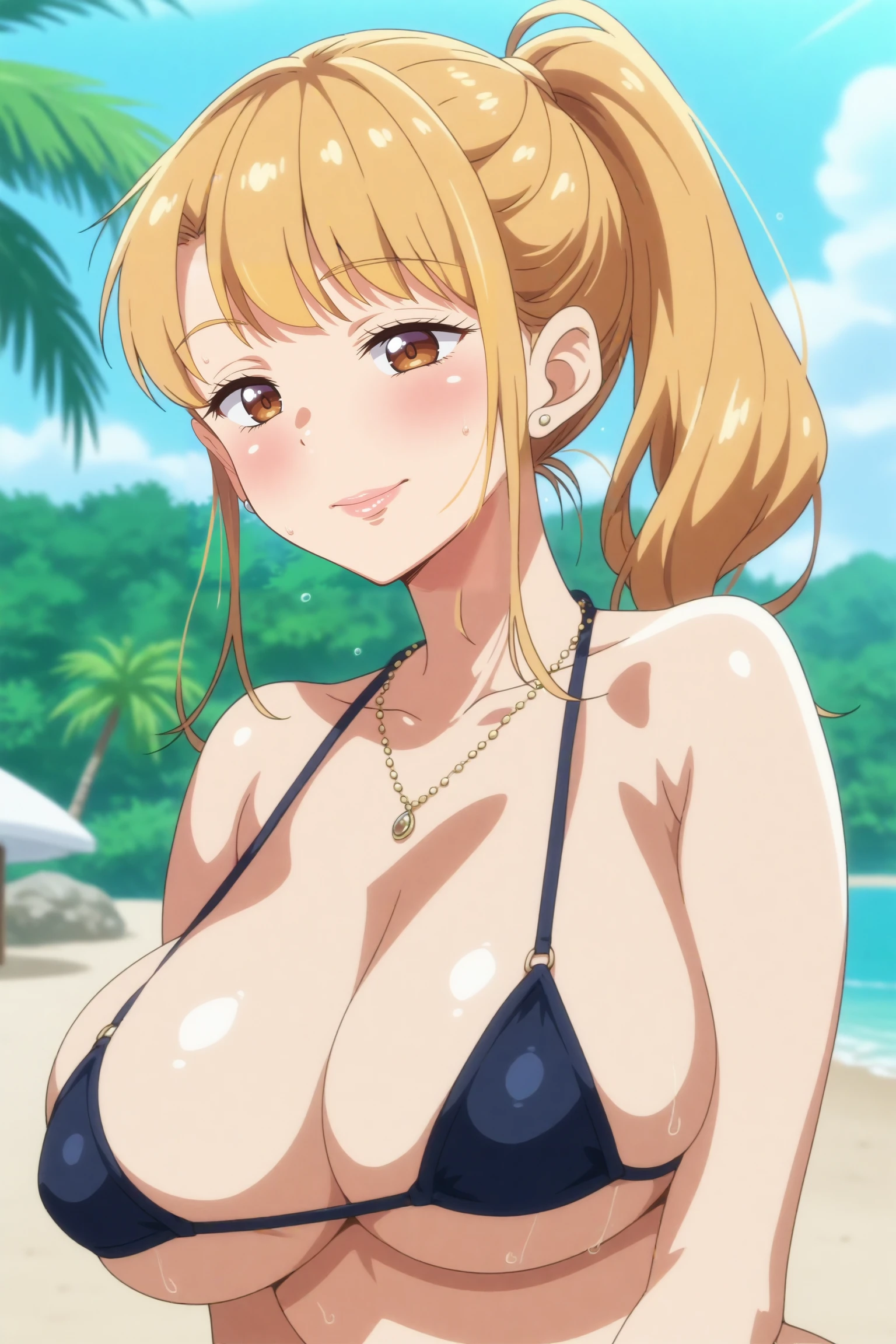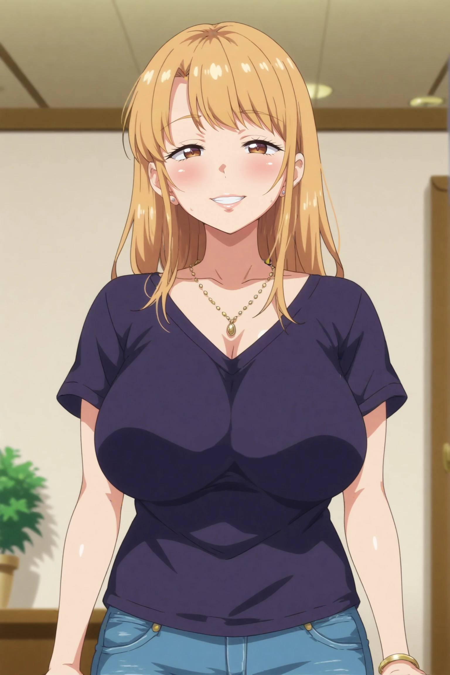 Triggers : aika,breasts,large breasts,jewelry,necklace,earrings,long hair,shirt,denim