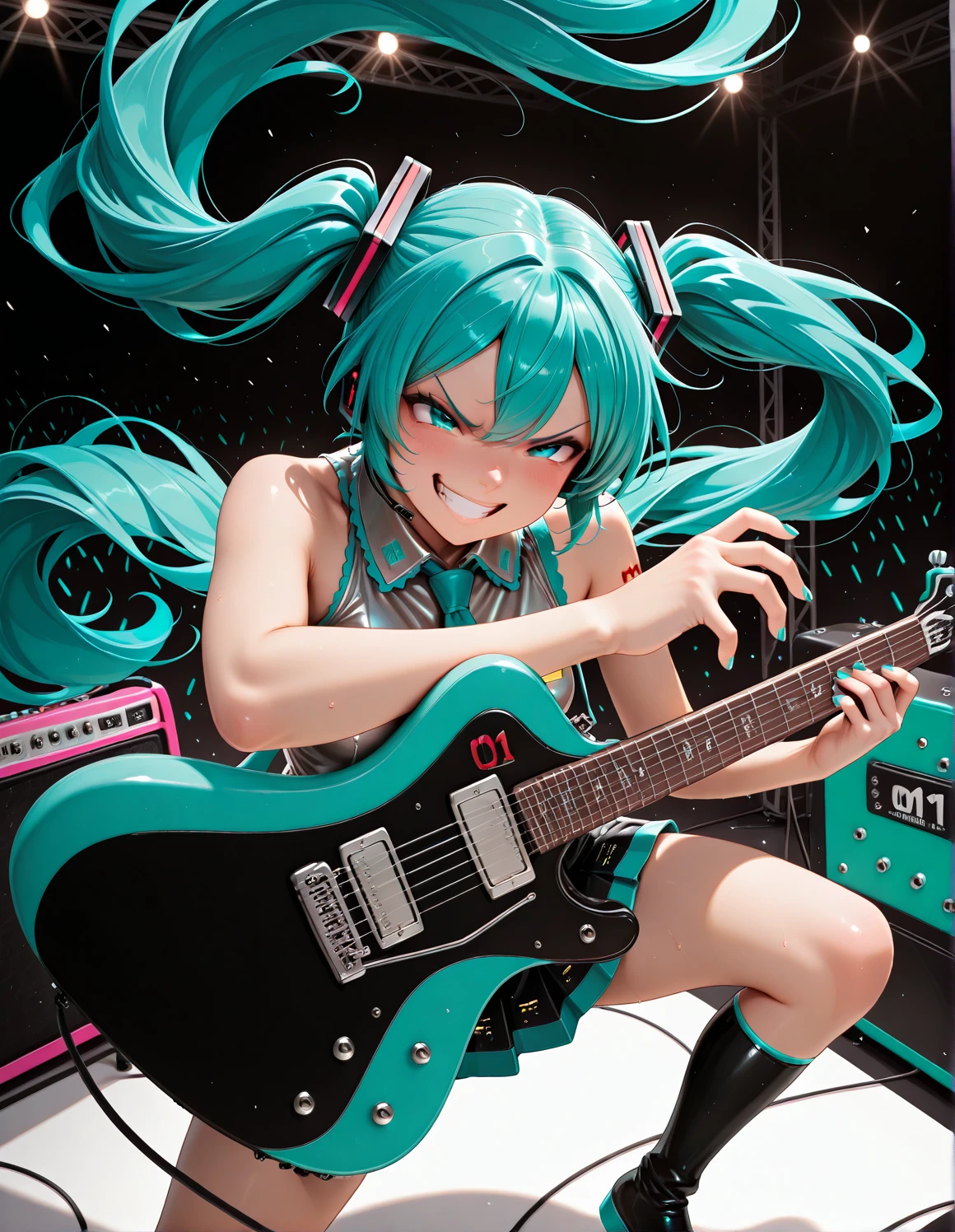 streammc, two-tone guitar, black guitar, green guitar,