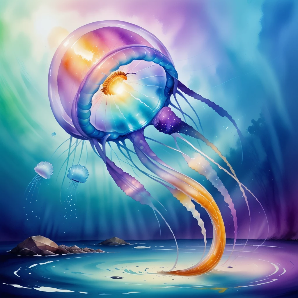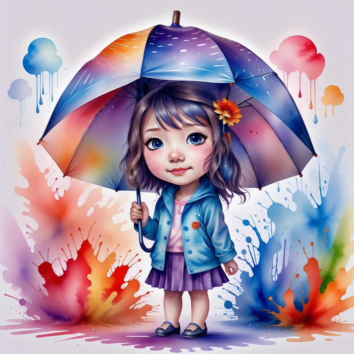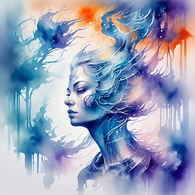 A Lora with a touch of colorful ink wash style