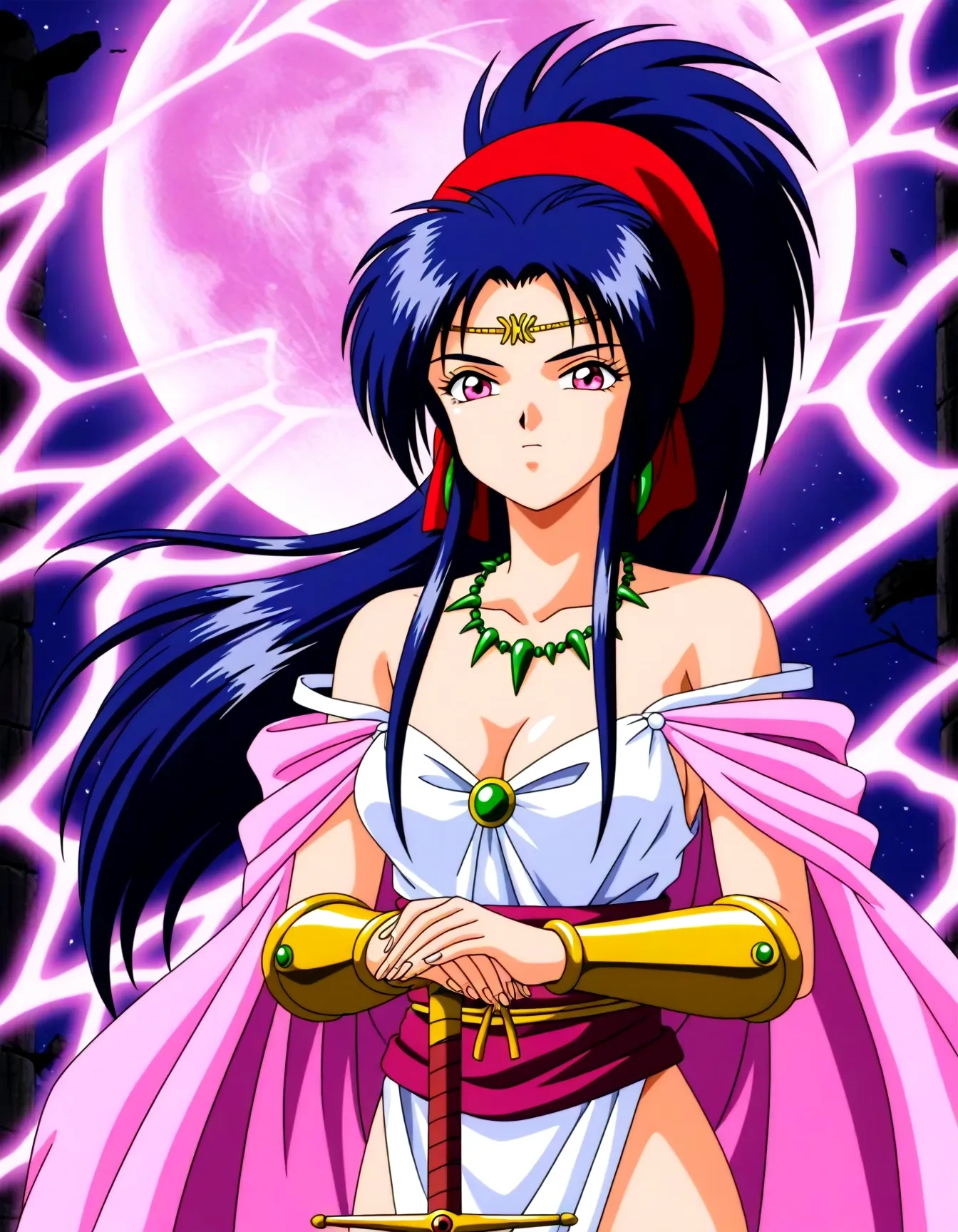モデルは輝夜 (カグヤ)を再現、高品質LoRA。1990年代アニメ風、魔法的な雰囲気、忠実なデザイン再現。高解像度推奨。