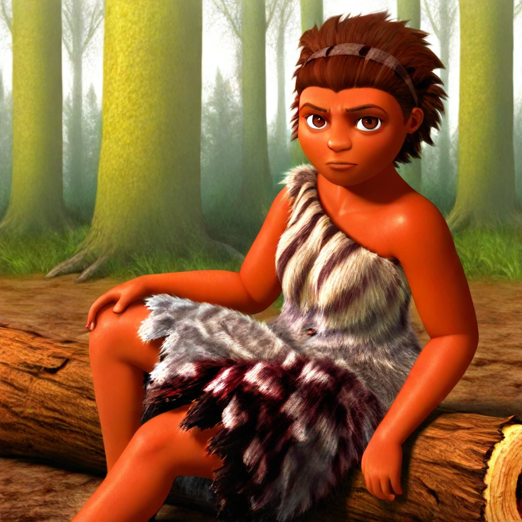 ugga_tc, brown hair, hairband, dark skin, brown eyes, animal pelt dress