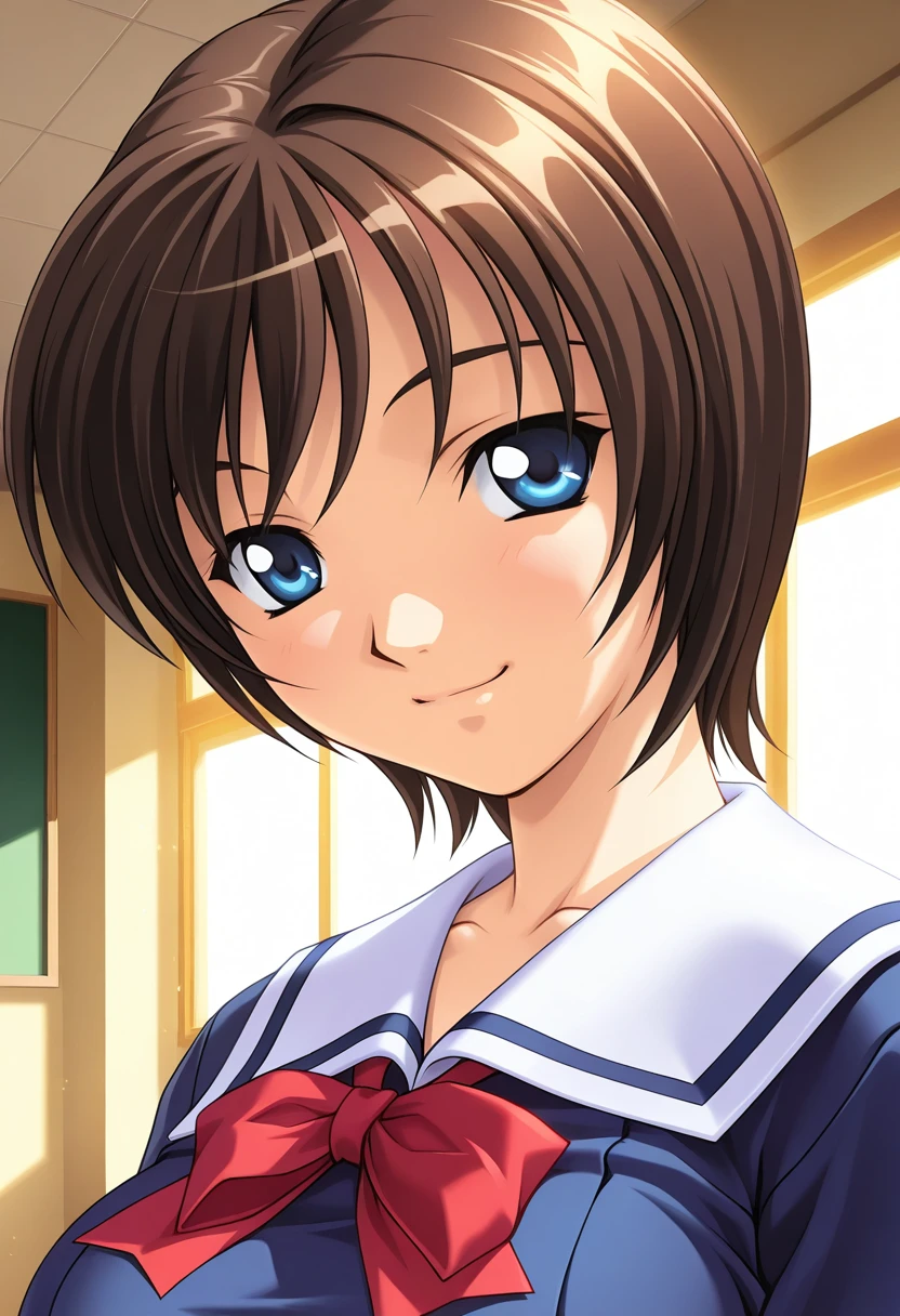 kotonoww, blue eyes, brown hair, short hair, bob cut, swept bangs, ??????????????,