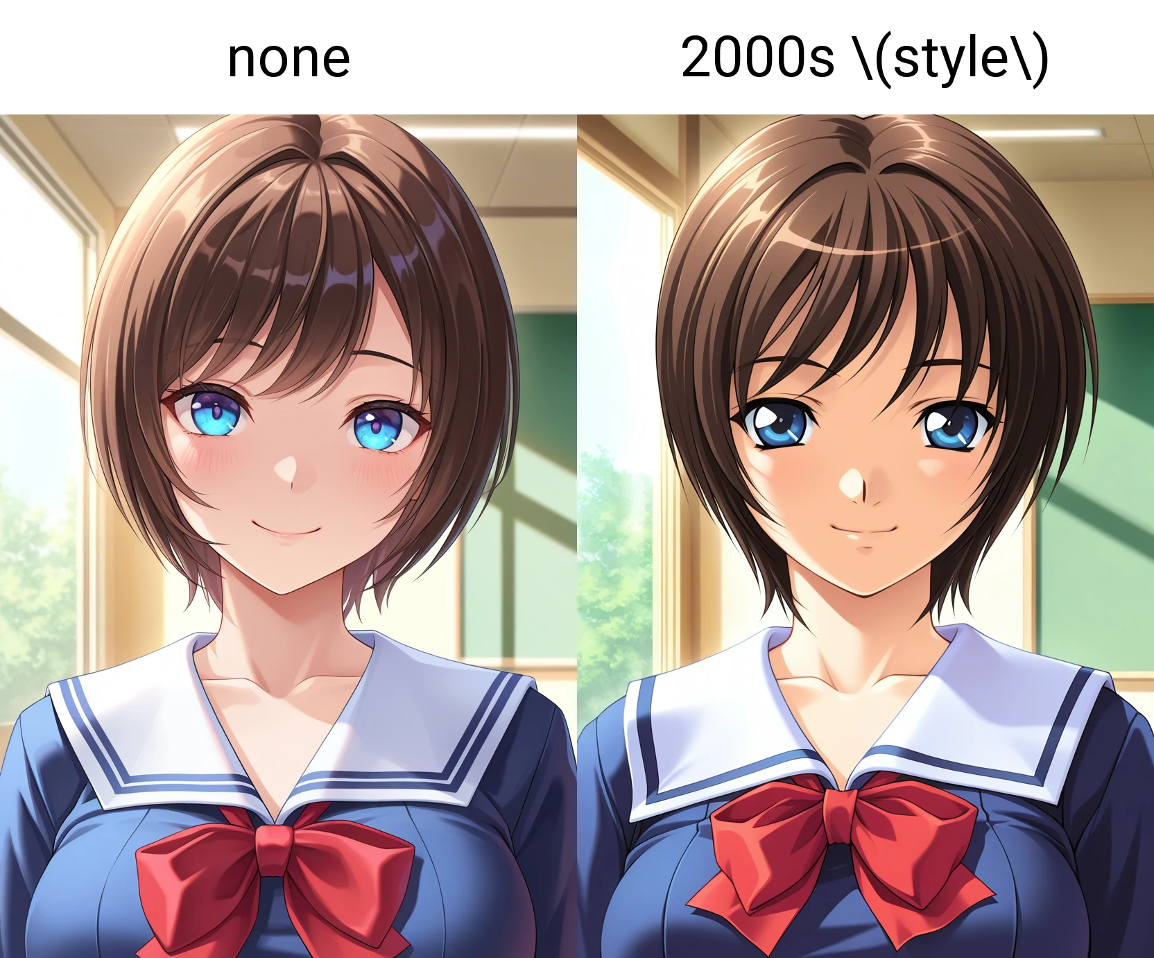 Using "2000s (style)" in the prompt will make the illustration look closer to a classic game style.