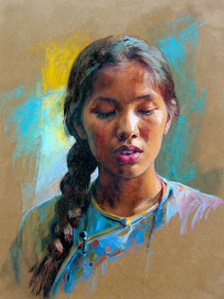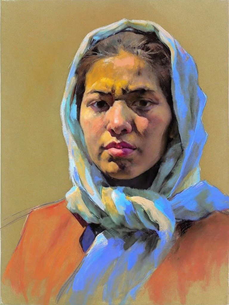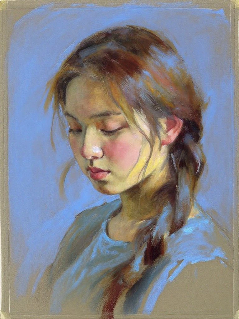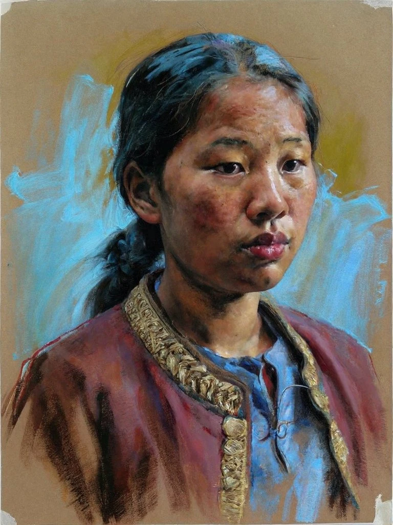 Sketching with soft pastel. First model with pastel style. It doesnt seem that ZIT can work well with pastel medium.