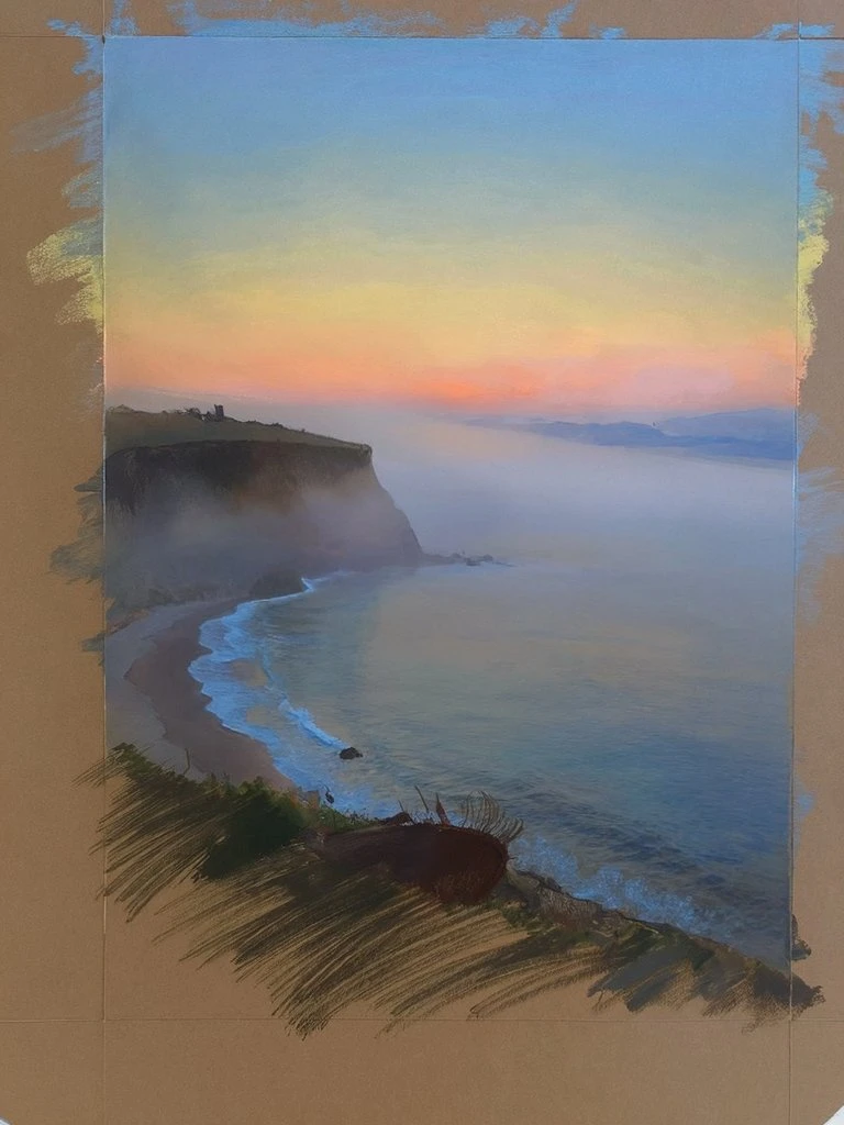 pastelsketchy, pastel art on kraft paper, sketch, deep colors, visible unblended pastel strokes, bright colors background