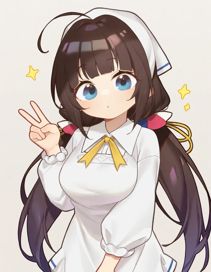 hinatsuru ai,brown hair,blue eyes,ahoge,twintails,low twintails,very long hair,hair ribbon,