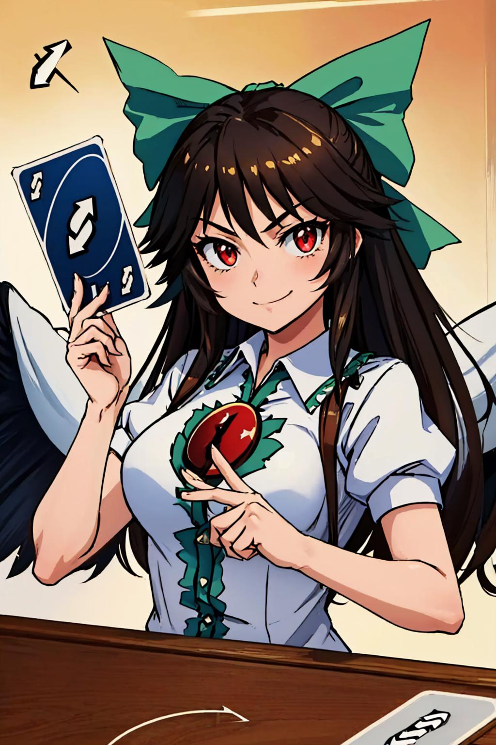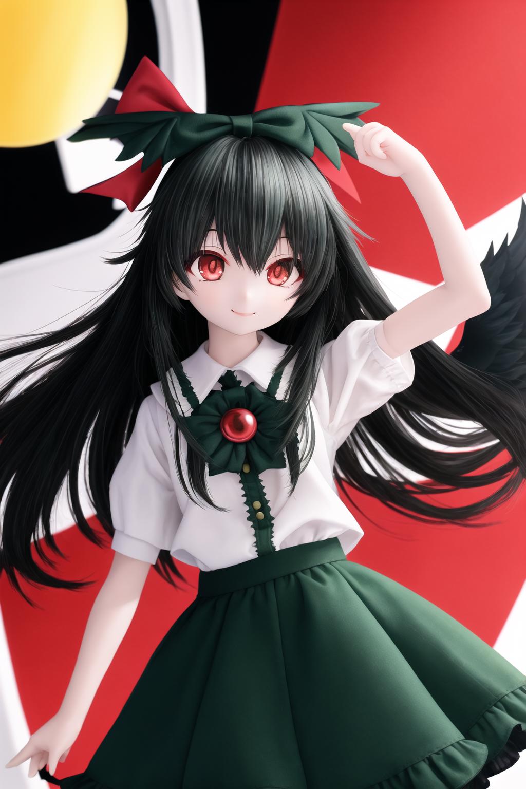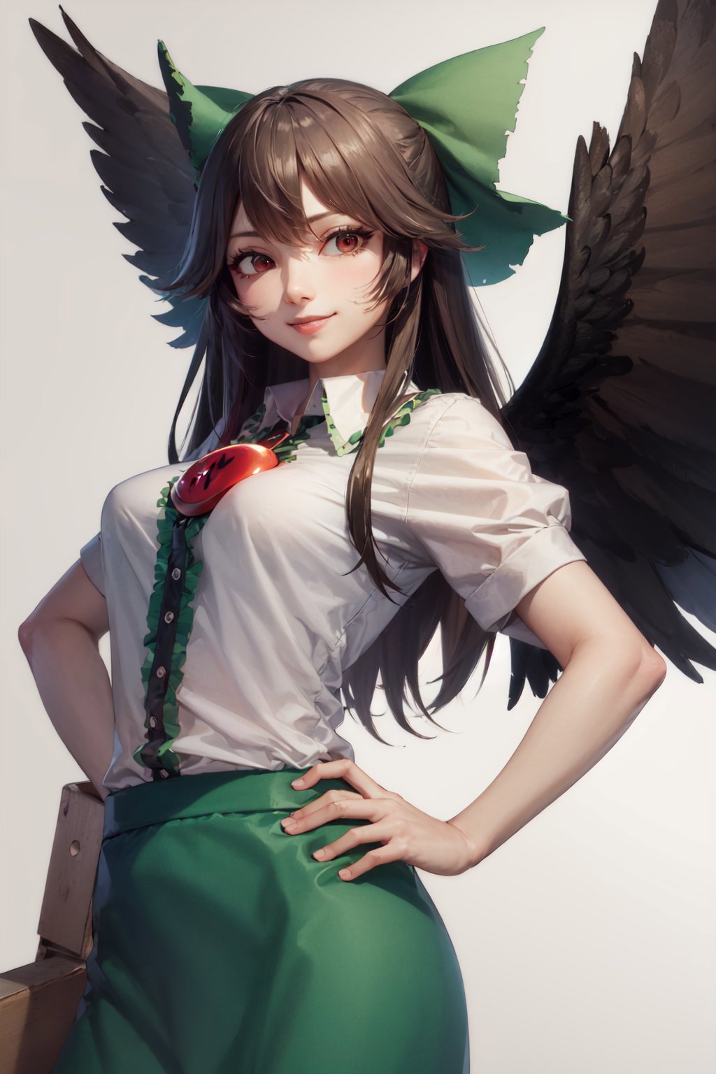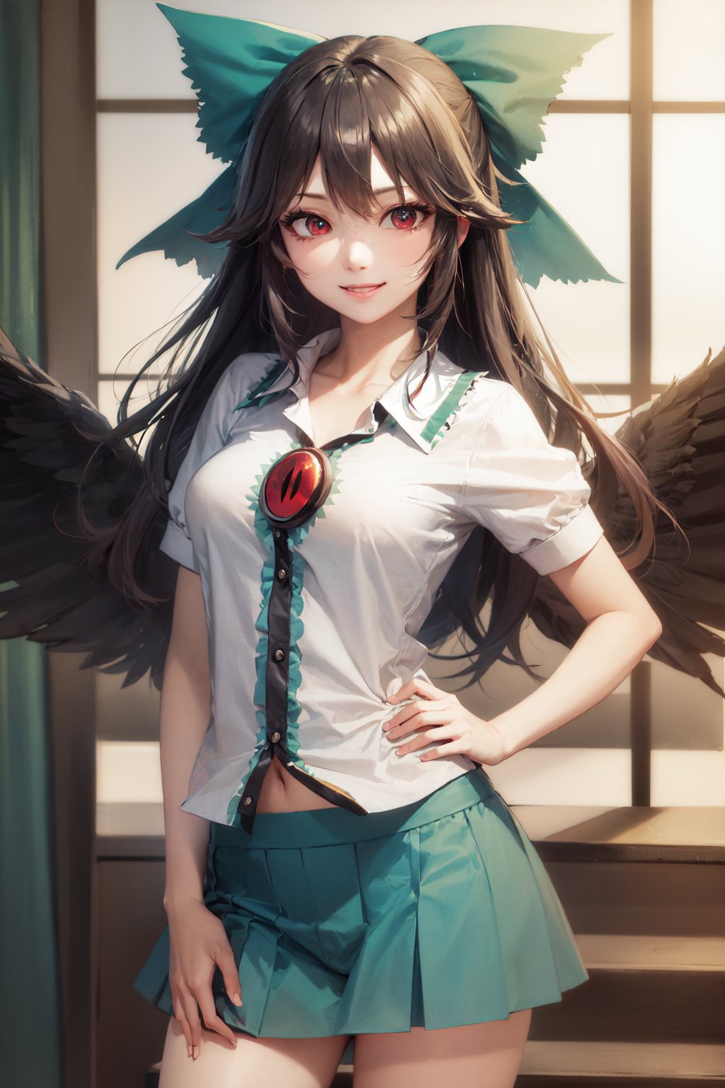 Default Outfit: hair bow, shirt, puffy short sleeves, skirt, wings