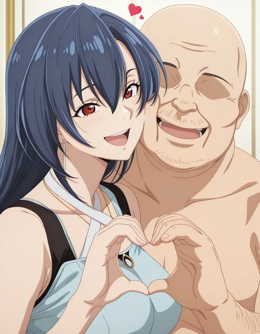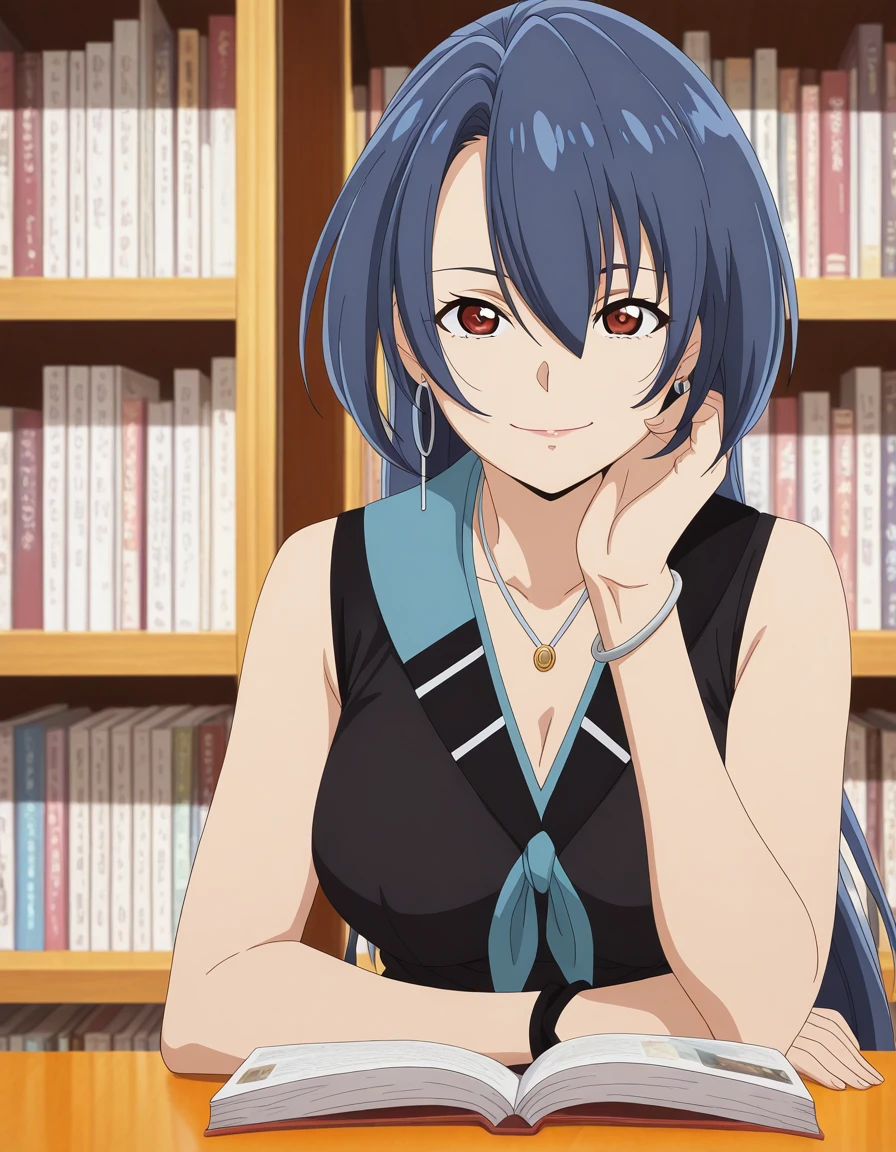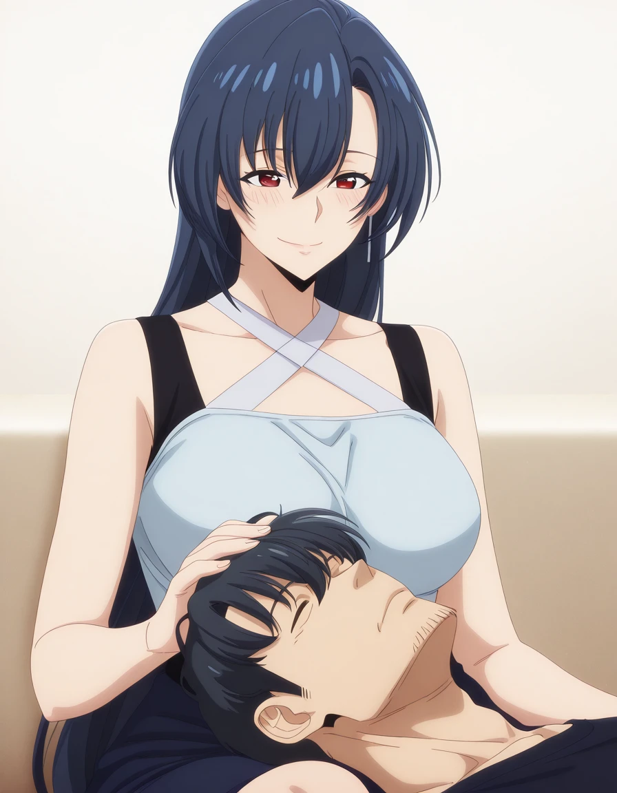 towa amane, long hair, red eyes, blue hair, hair between eyes, mature female, breasts, anime screencap