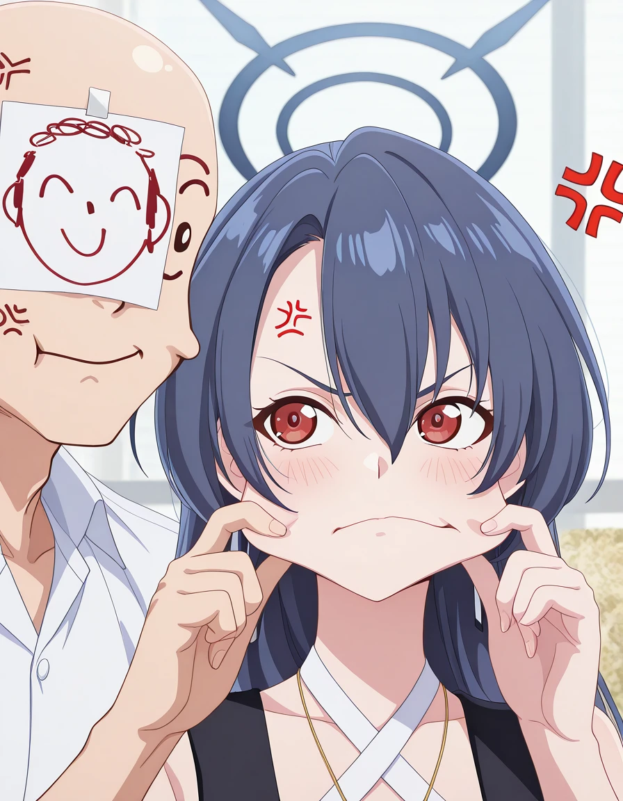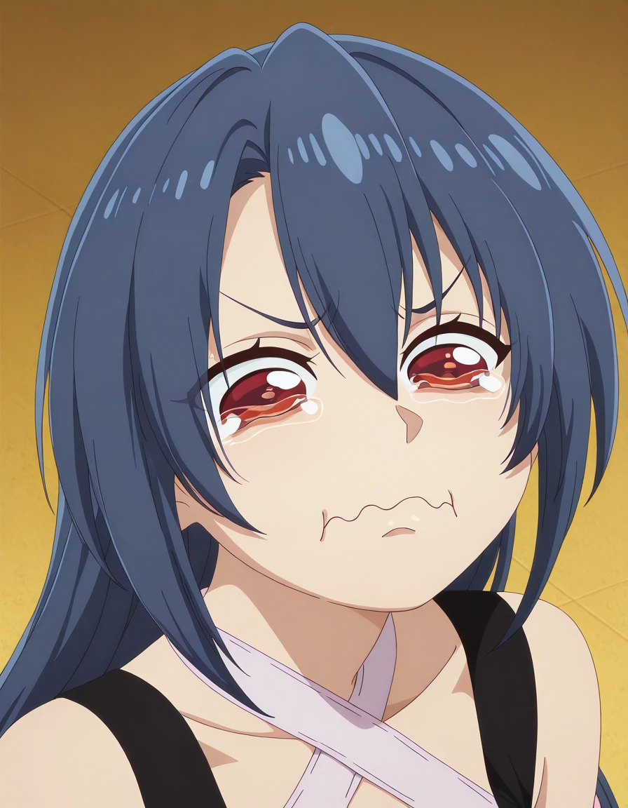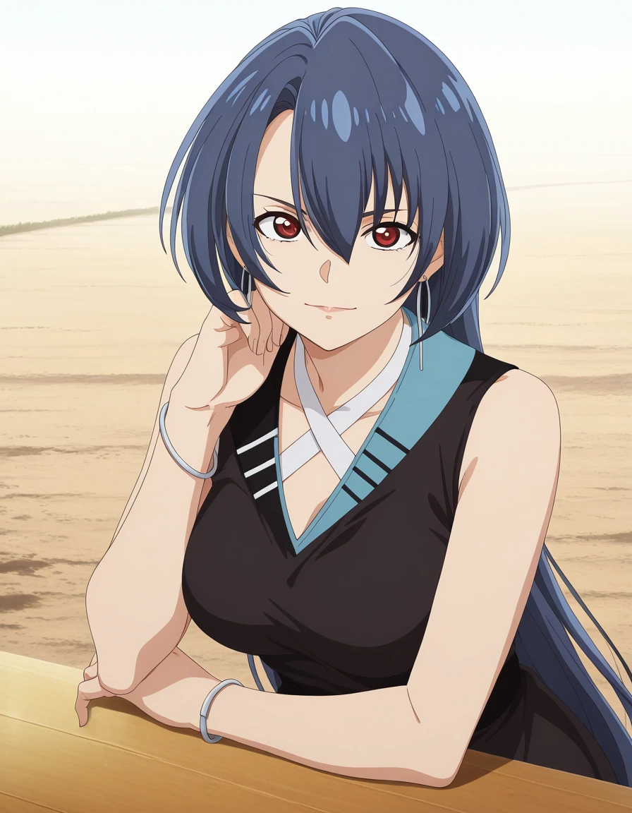 towa amane, long hair, red eyes, blue hair, hair between eyes, mature female, , anime screencap