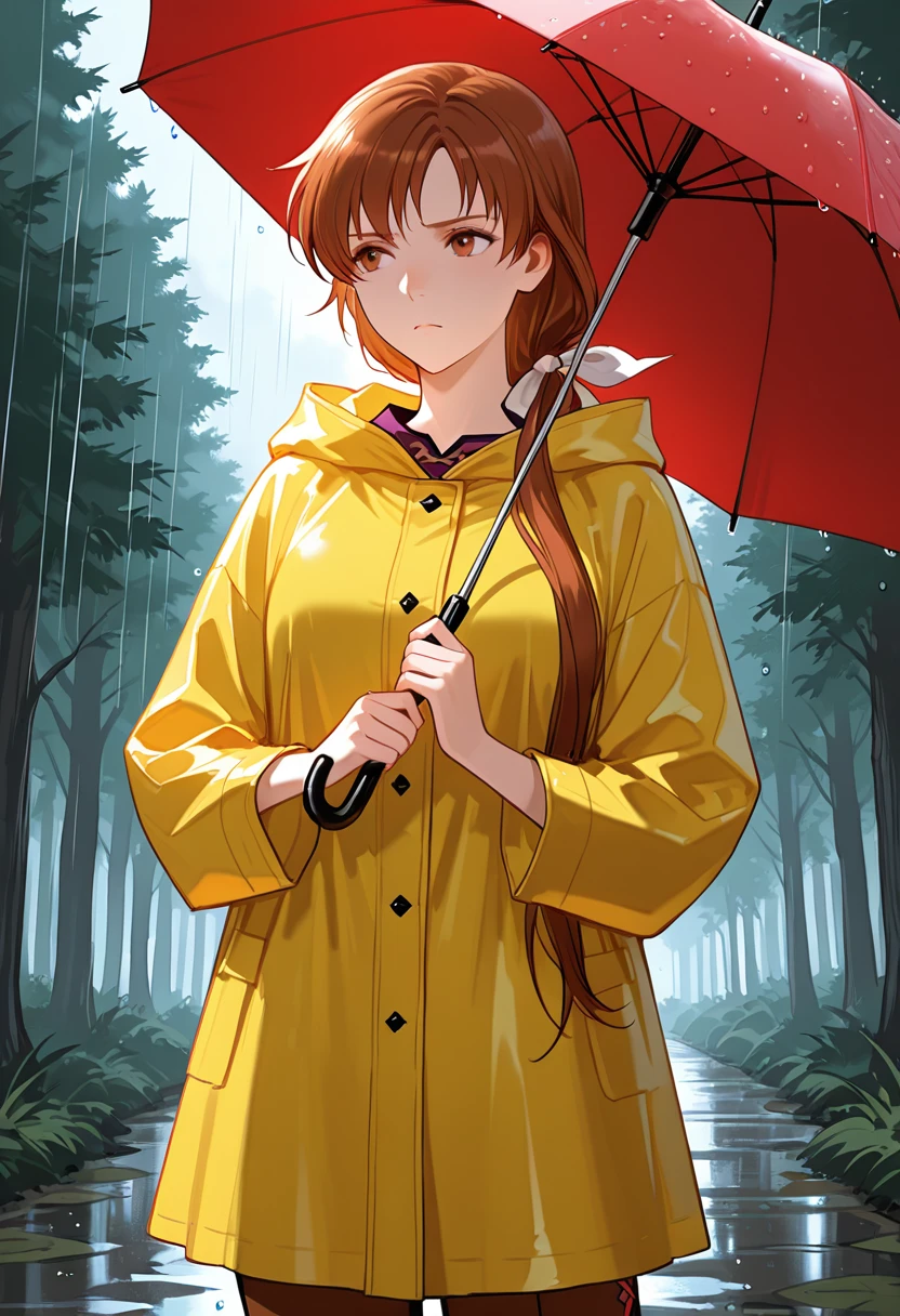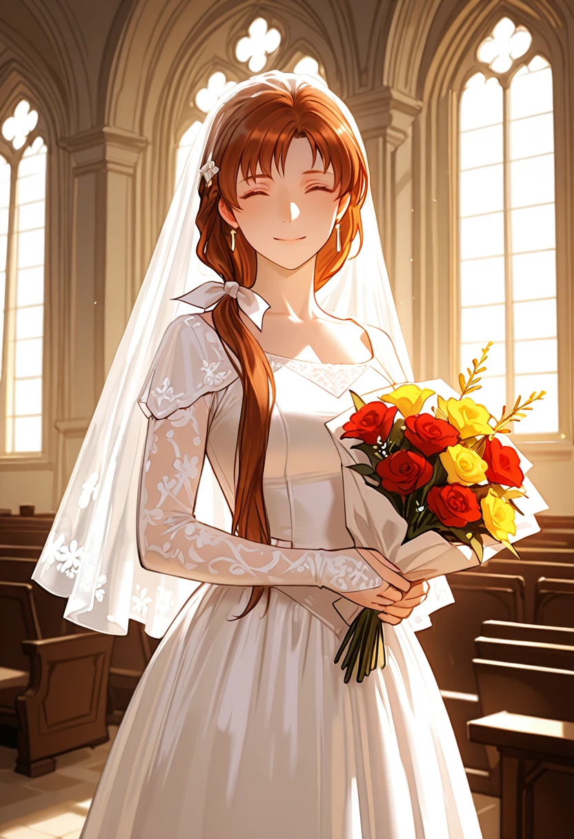 NatalieFE, brown hair, long hair, low ponytail, bangs, hair bow, white bow, brown eyes,