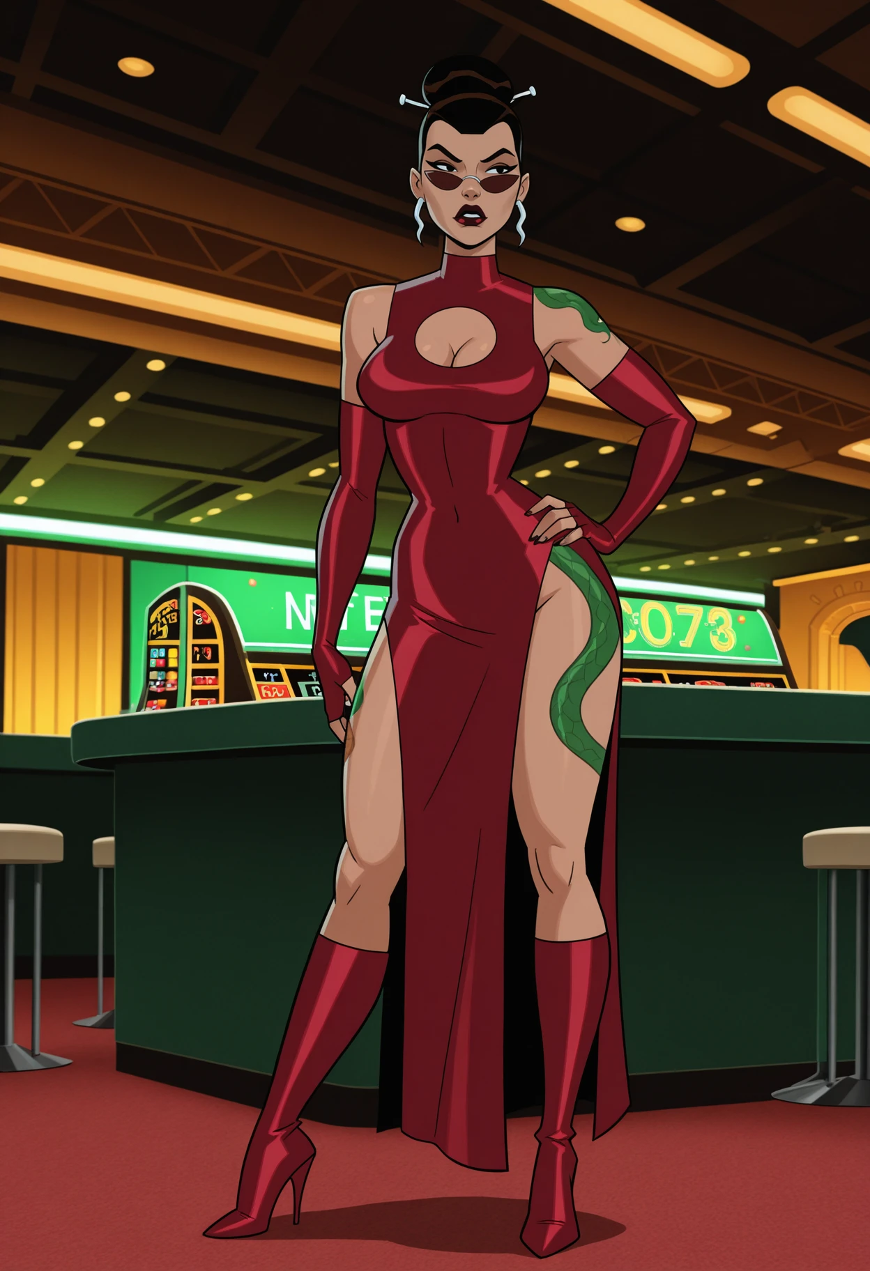 A Lora of Roulette, from Justice League Unlimited, American animated superhero television series produced by Warner Bros. Animation with DC Comics.