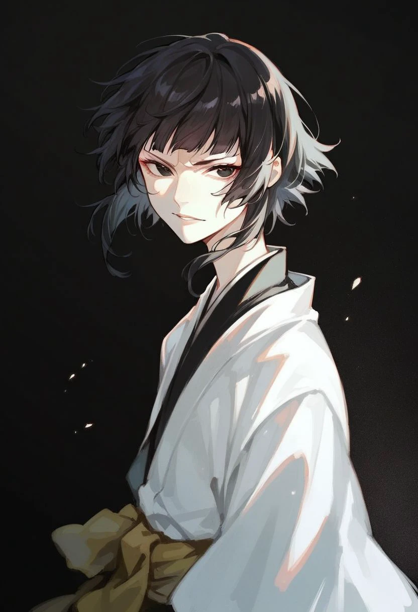 basic prompt: 1girl, solo, soifon, bangs, black eyes, black hair,