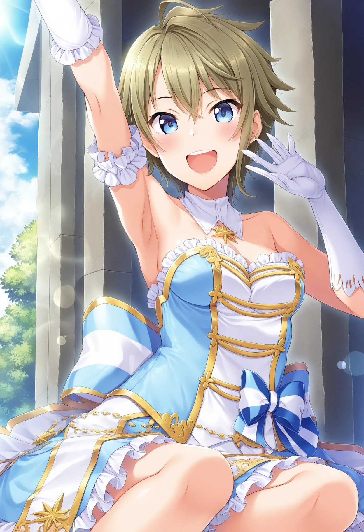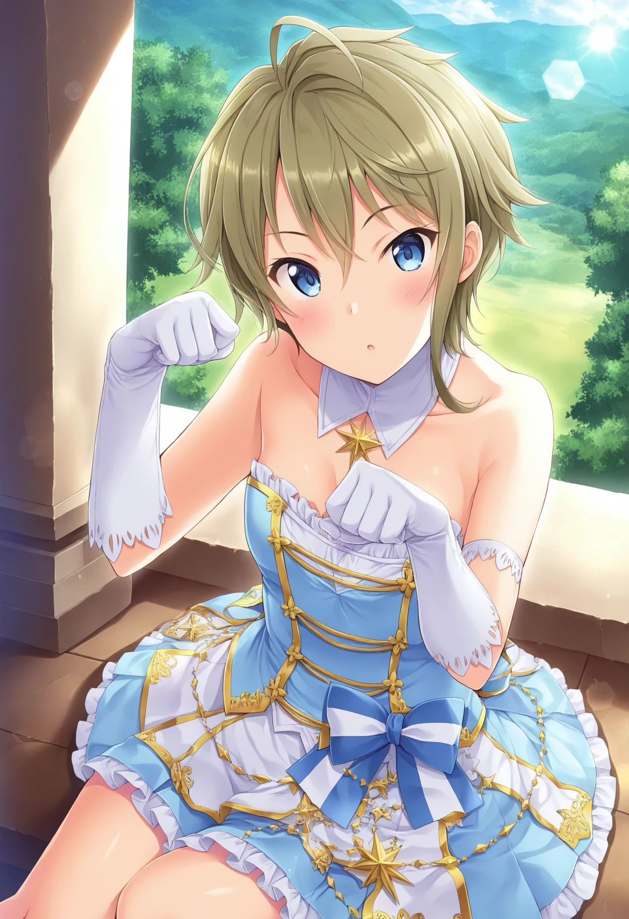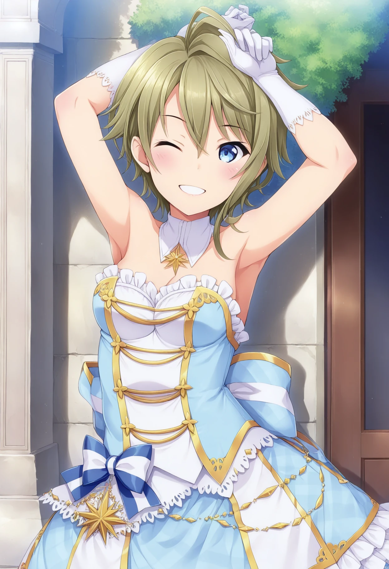 Triggerwords: c-tsuba, olive hair, short hair, blue eyes, ahoge,