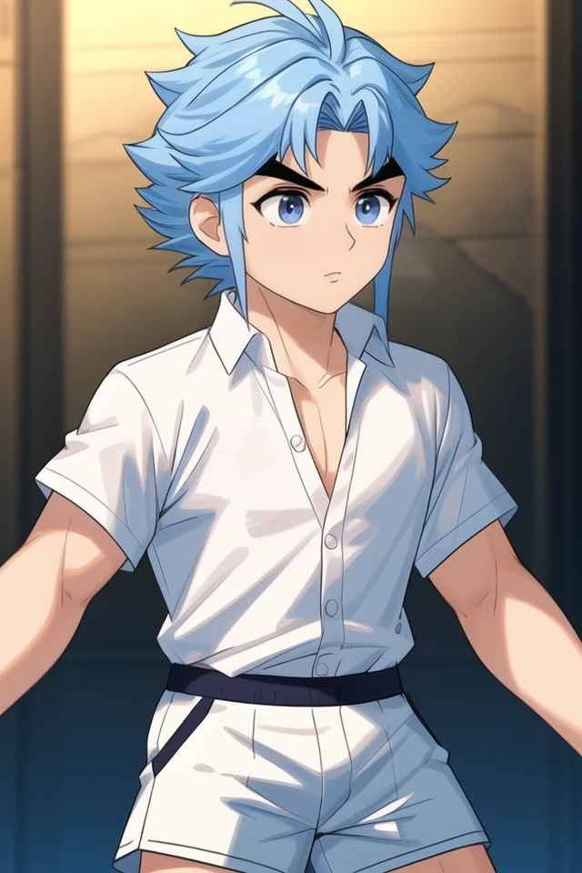 Trigger word: nangongwentian,blue hair,blue eyes,thick eyebrows,spiked hair,side locks,