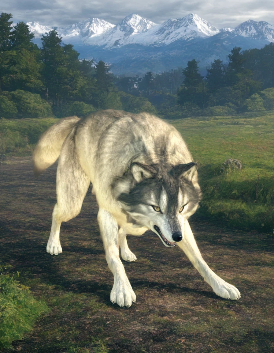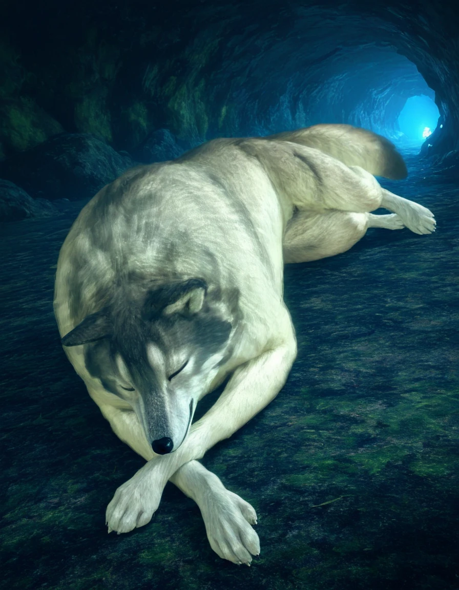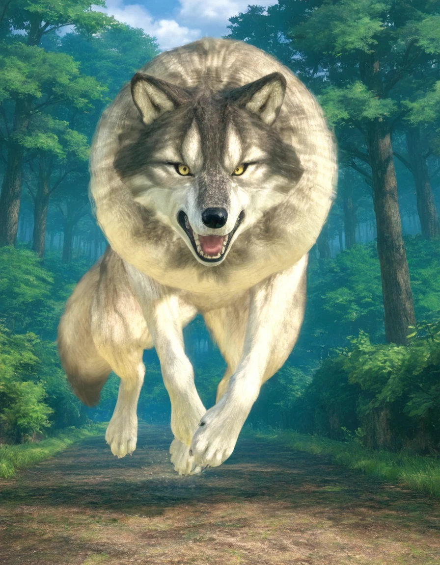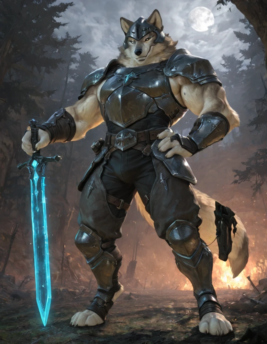 sif, wolf, feral, grey fur, giant, no humans, outdoors, glowing weapon, holding sword, mouth hold,