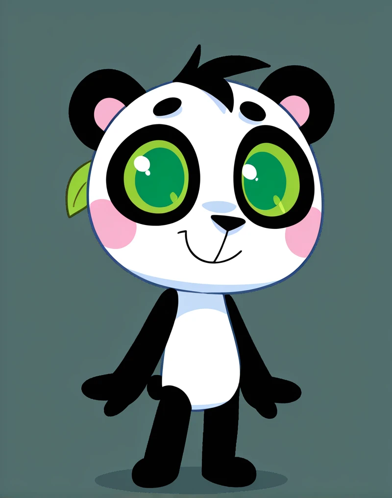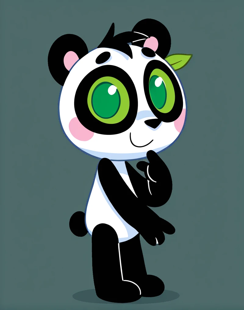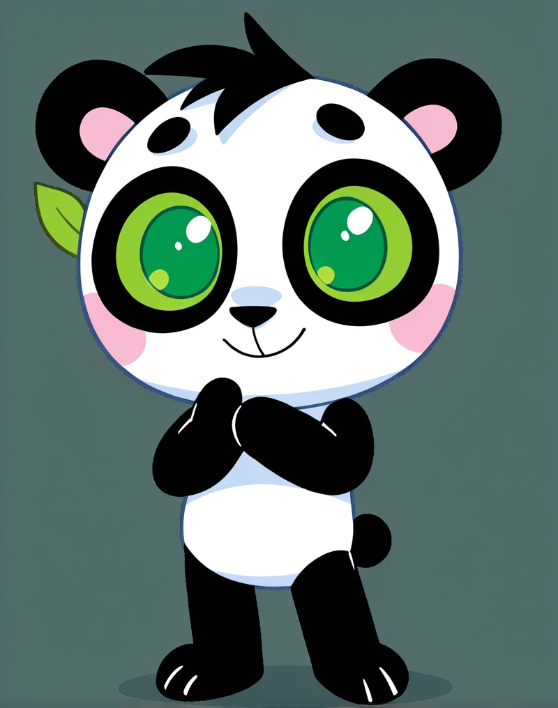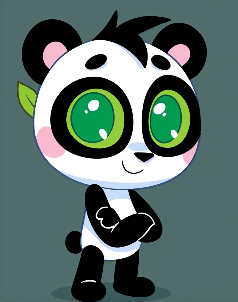PandikVk, panda, black and white fur, two-tone fur, chibi, green eyes, panda ears, panda nose, furry male, furry, 1boy, panda tail