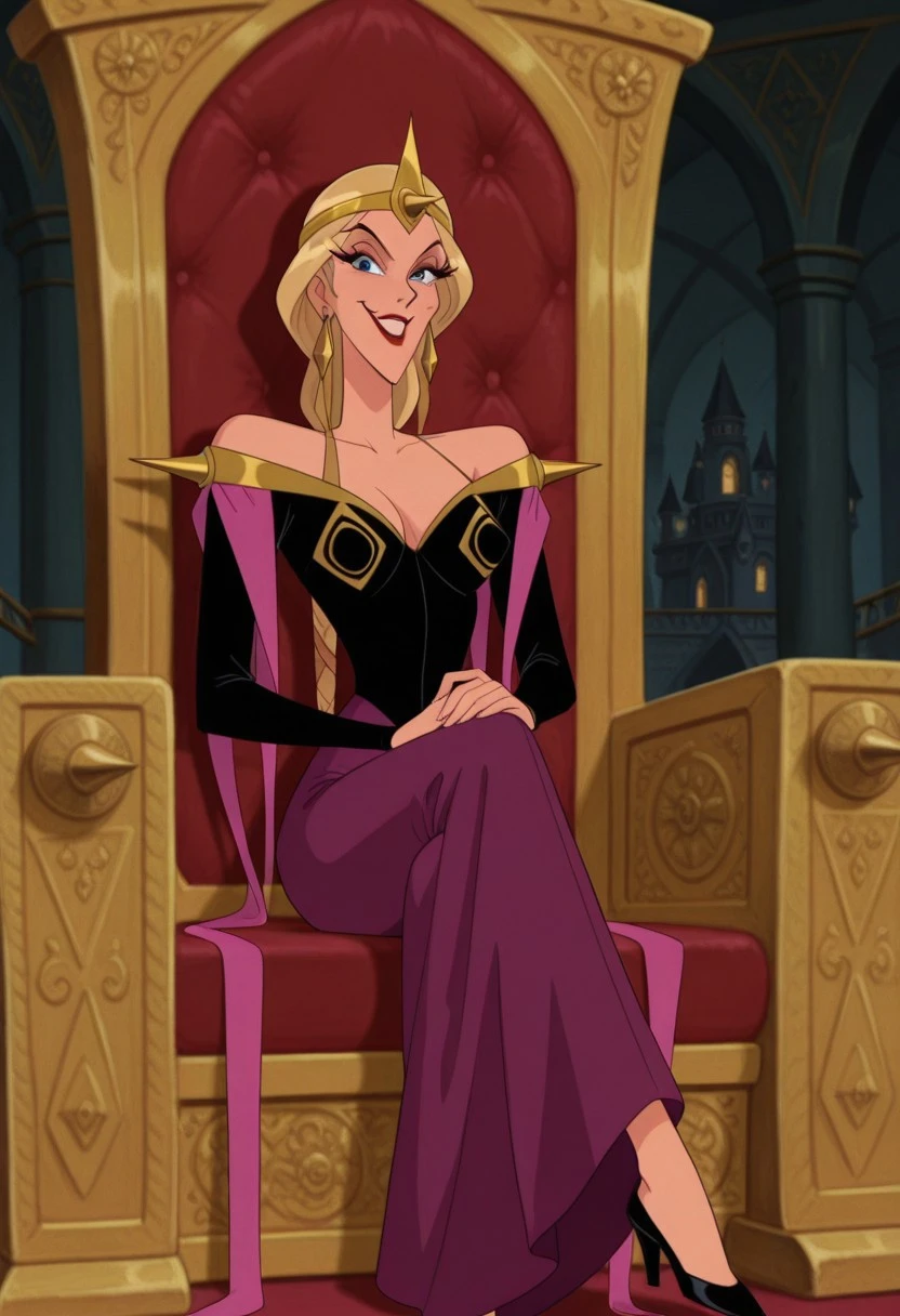 Ludmilla, tall, blue eyes, blonde hair, long braided ponytail,