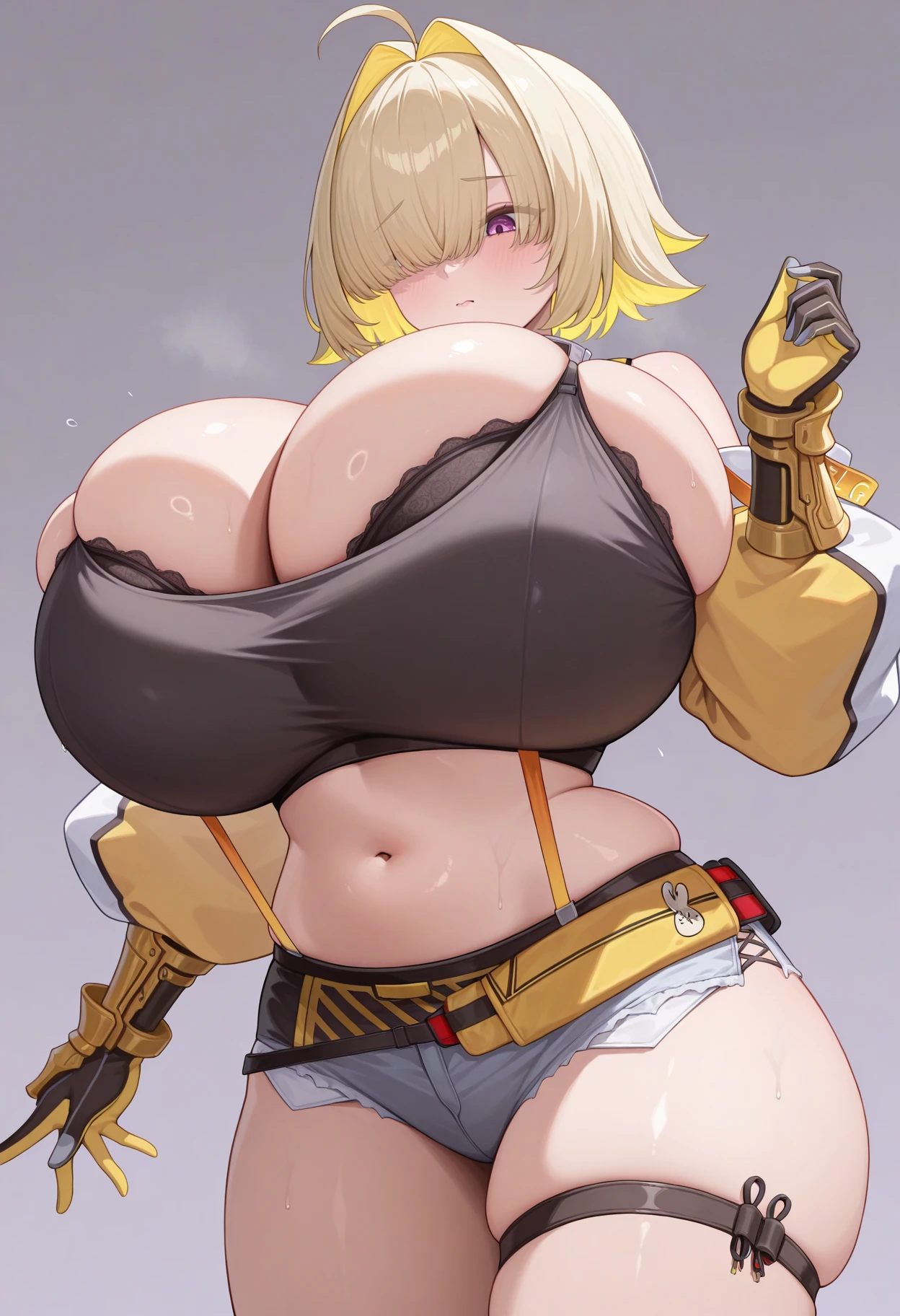undersized bra, huge breasts, skindentation, cleavage, underboob, sideboob, bursting breasts