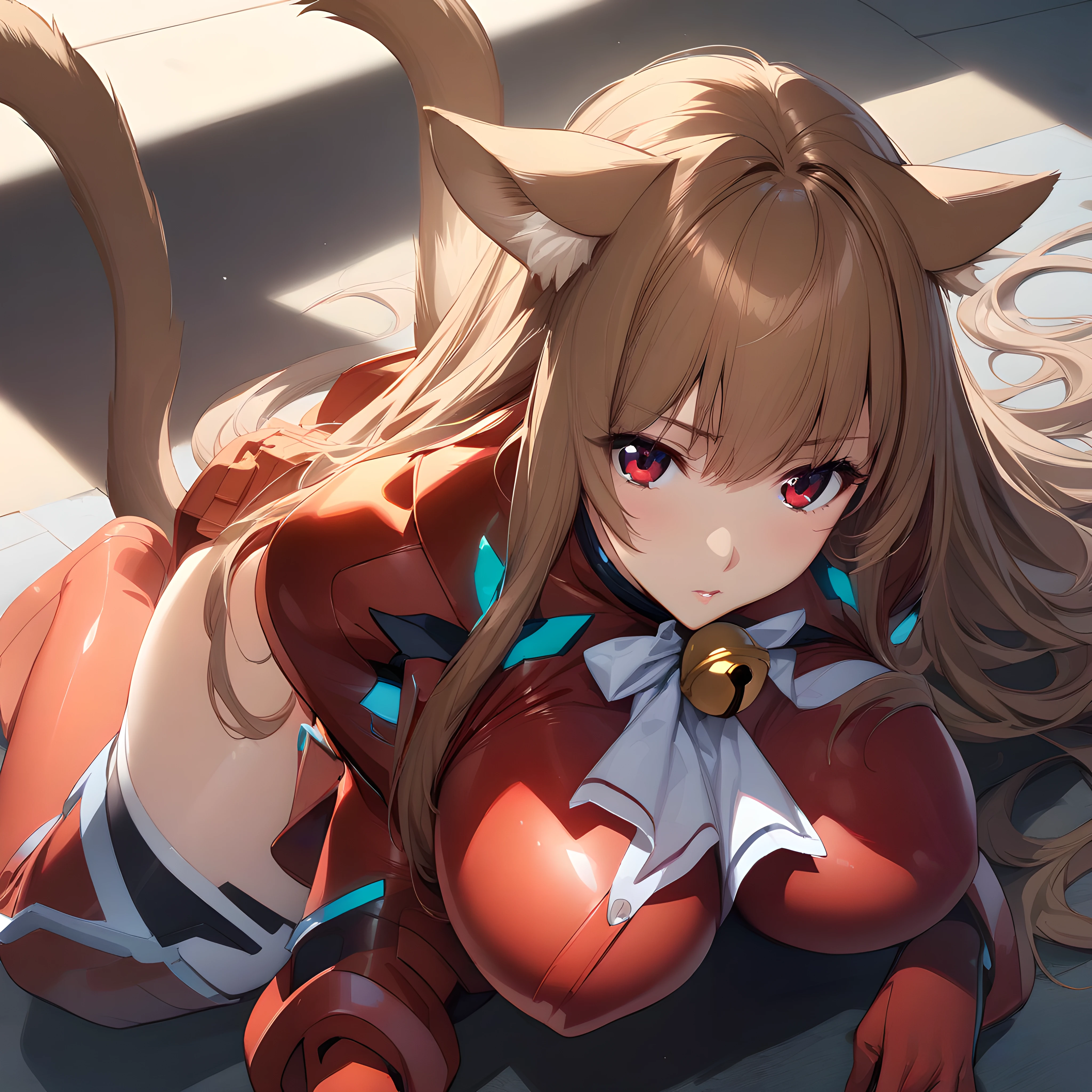 activation tag is "eris(asniy)", appearance tag is "brown hair, red eyes, long hair, cat ears, cat tail, bell"