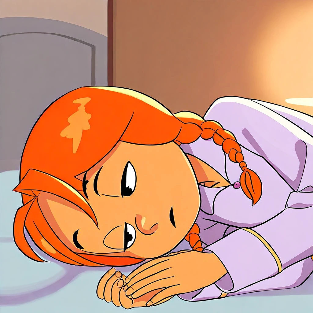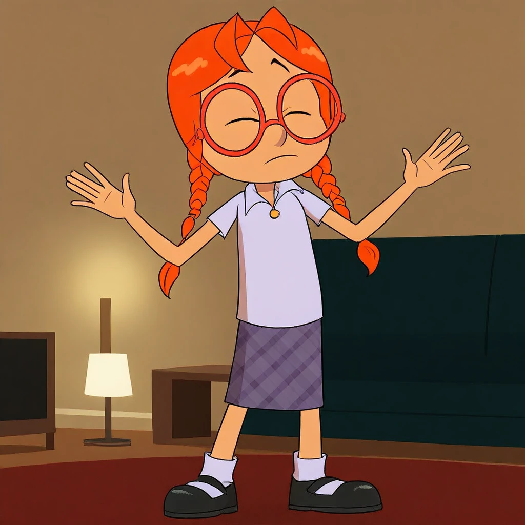nath, les sisters, orange hair, twin braids, glasses, black eyes,