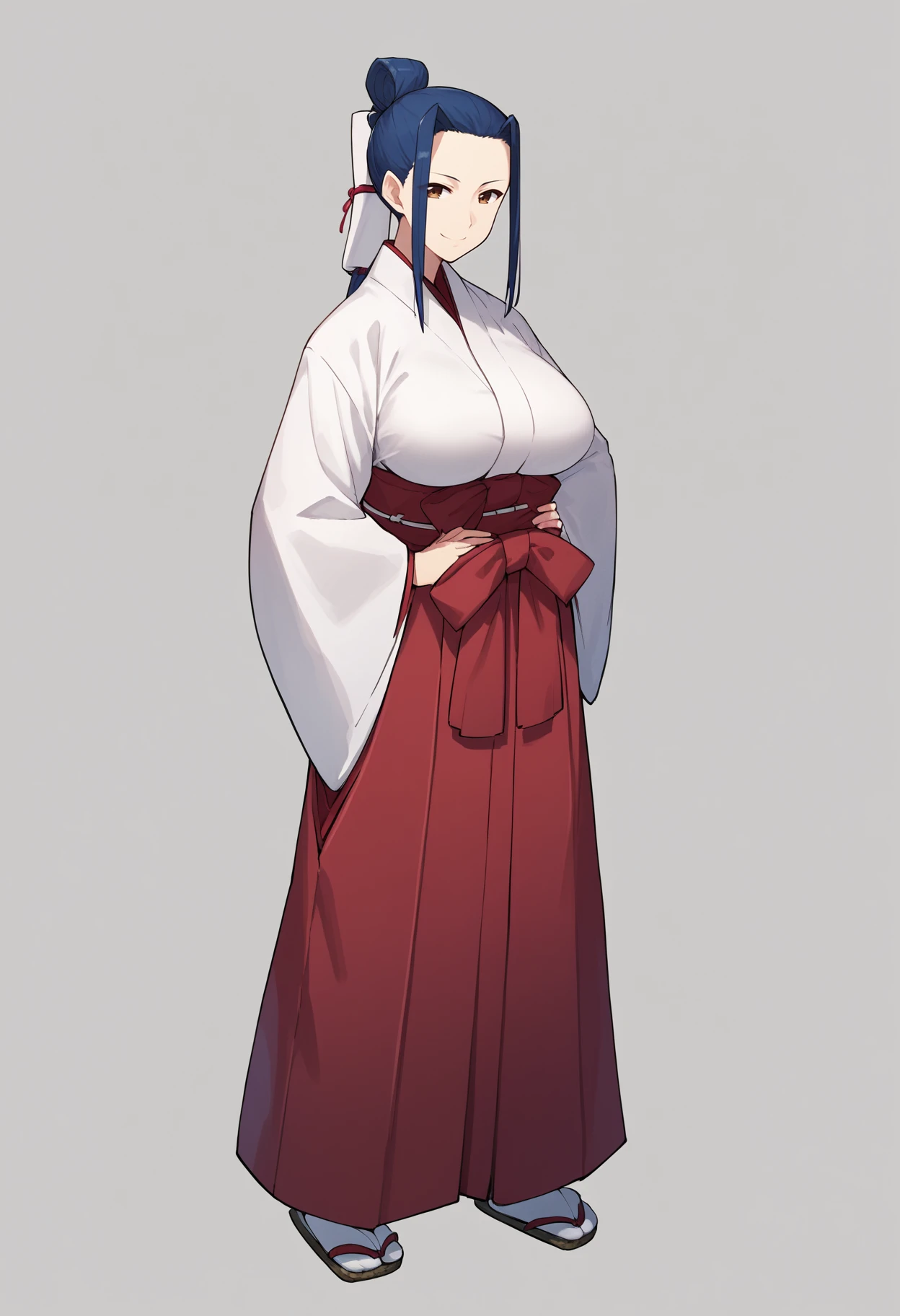 Miko outfit prompts : japanese clothes, kimono, large breasts, miko, red hakama skirt, tabi
