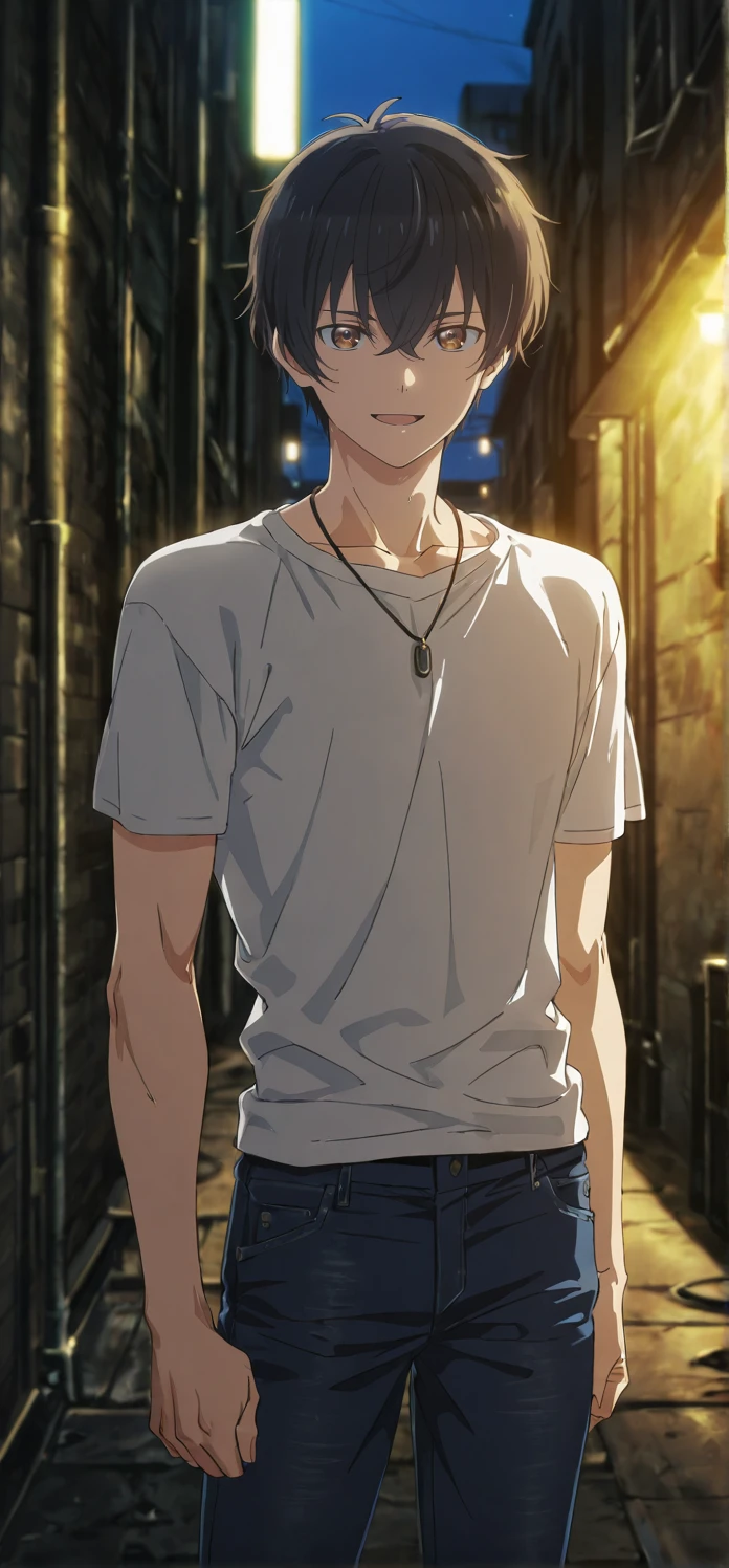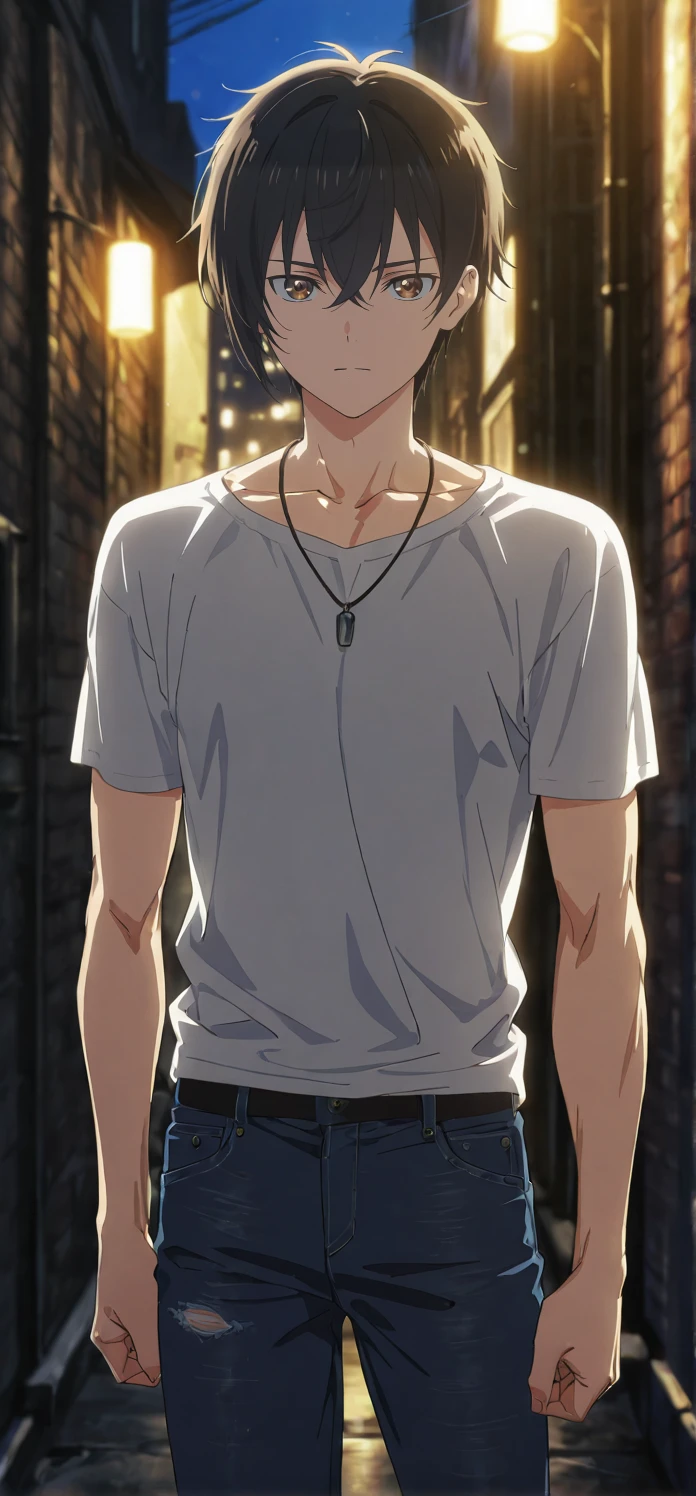 Trigger words: rio karasuki,hair between eyes,black hair,grey hair,brown eyes