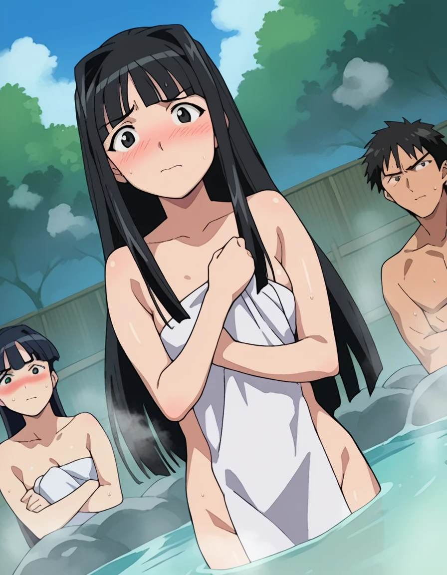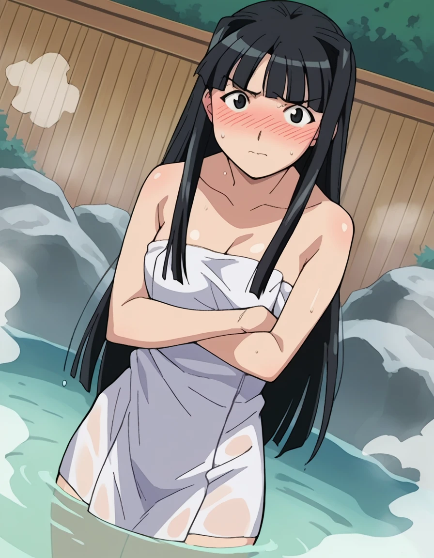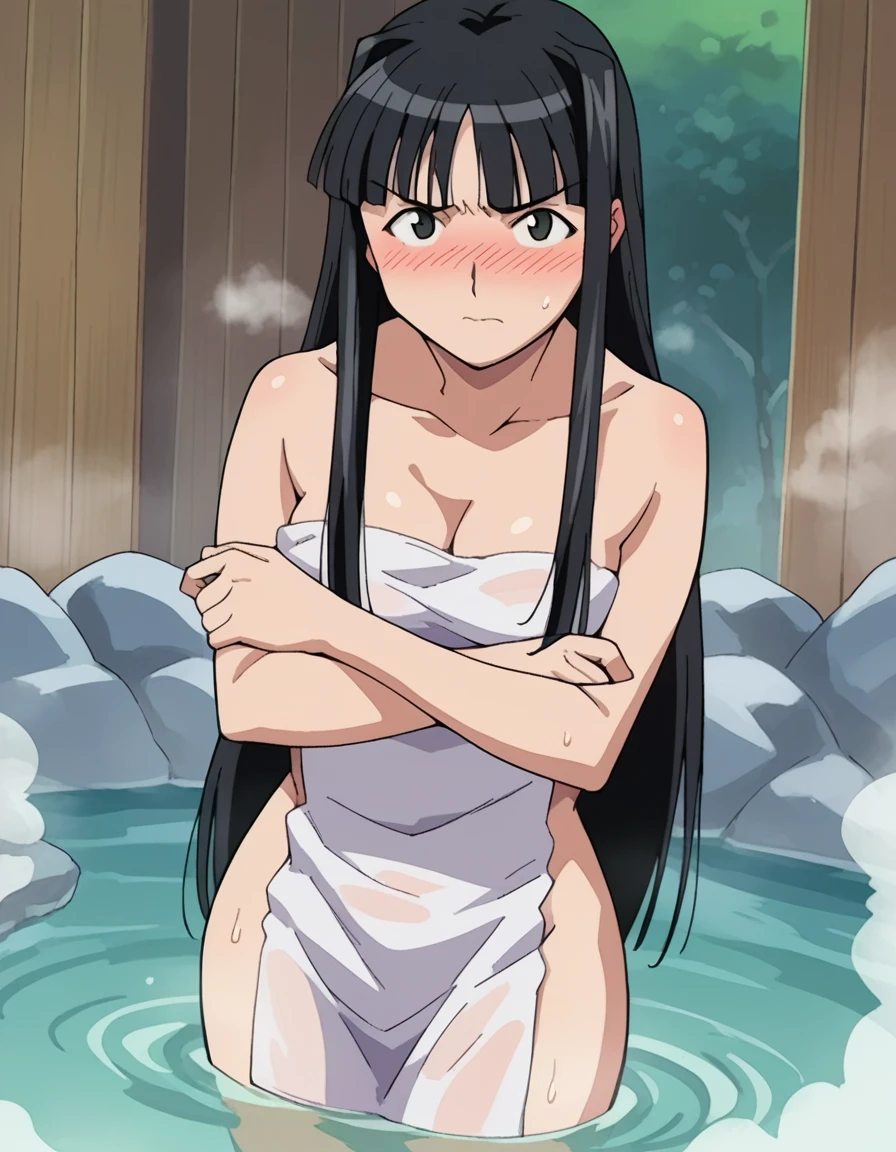 motoko aoyama, long hair, black hair, black eyes, bangs,