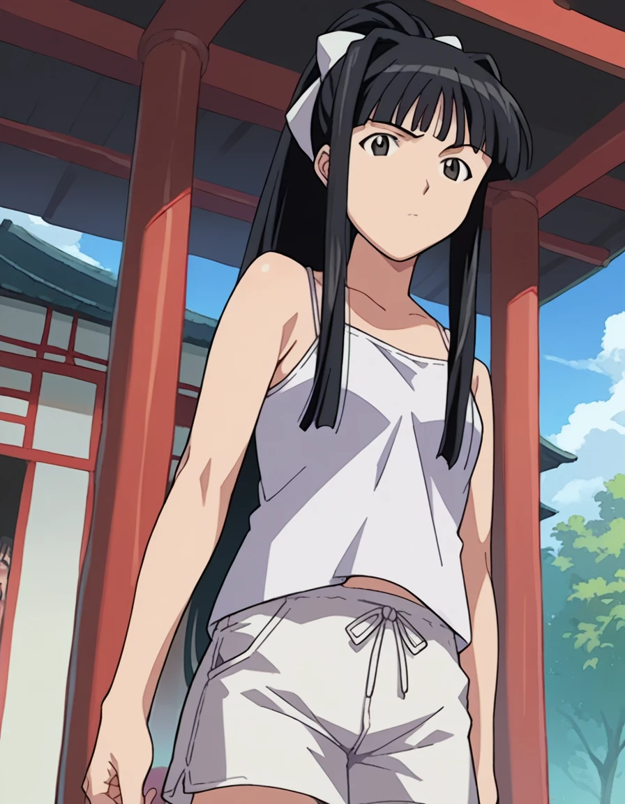 ponytail, shorts, camisole, white shorts,