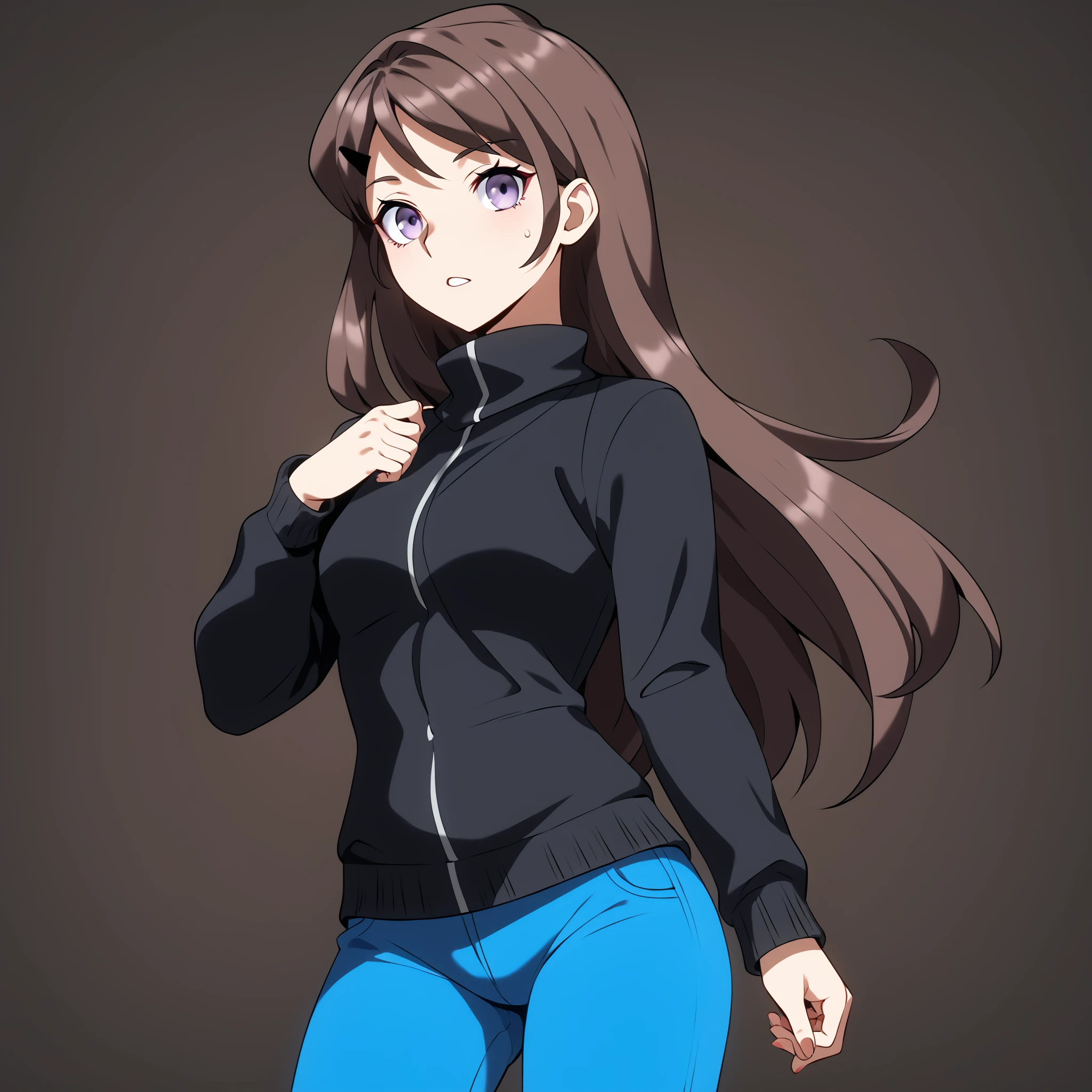 sweater, blue pants,