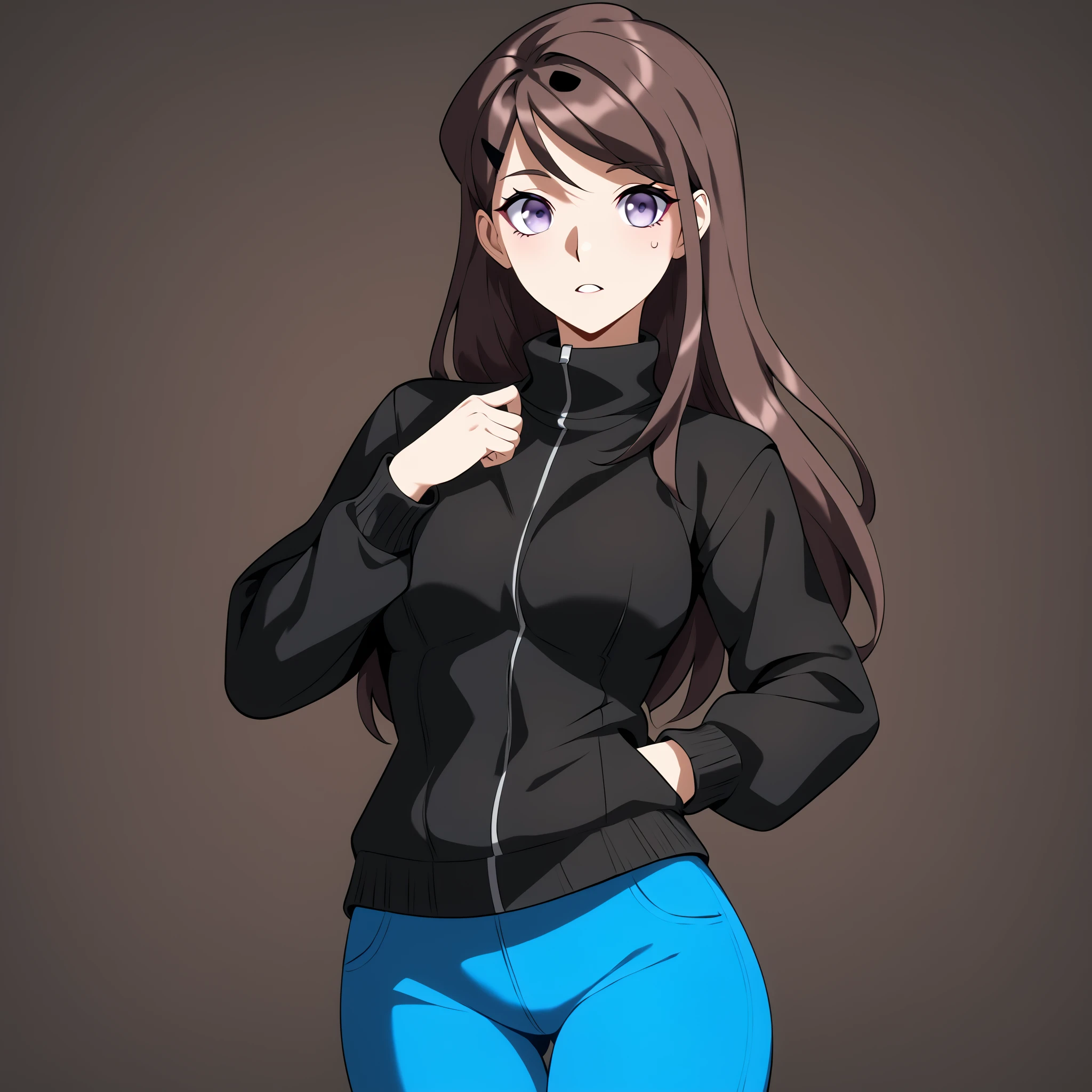 Shin sehee, 1girl, brown hair, long hair, purple eyes,