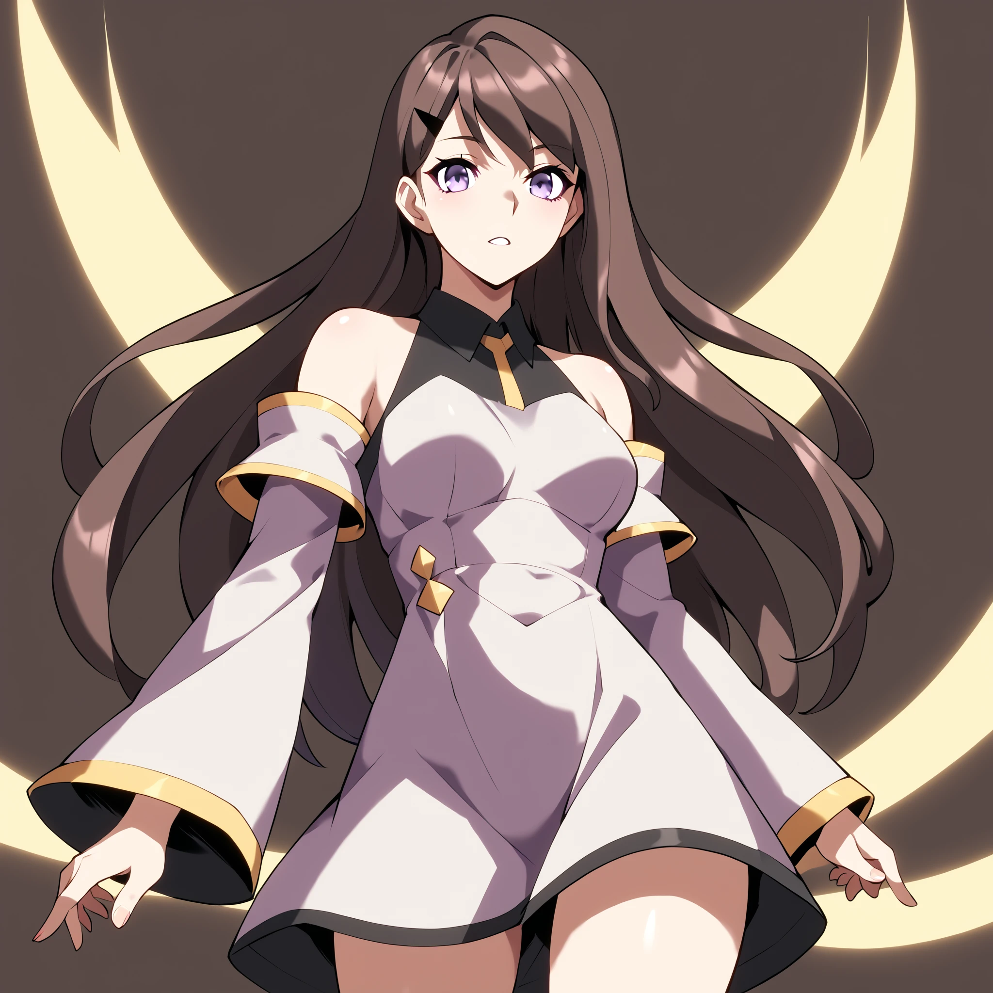 Trigger words: Shin sehee, 1girl, long hair, brown hair, purple eyes,