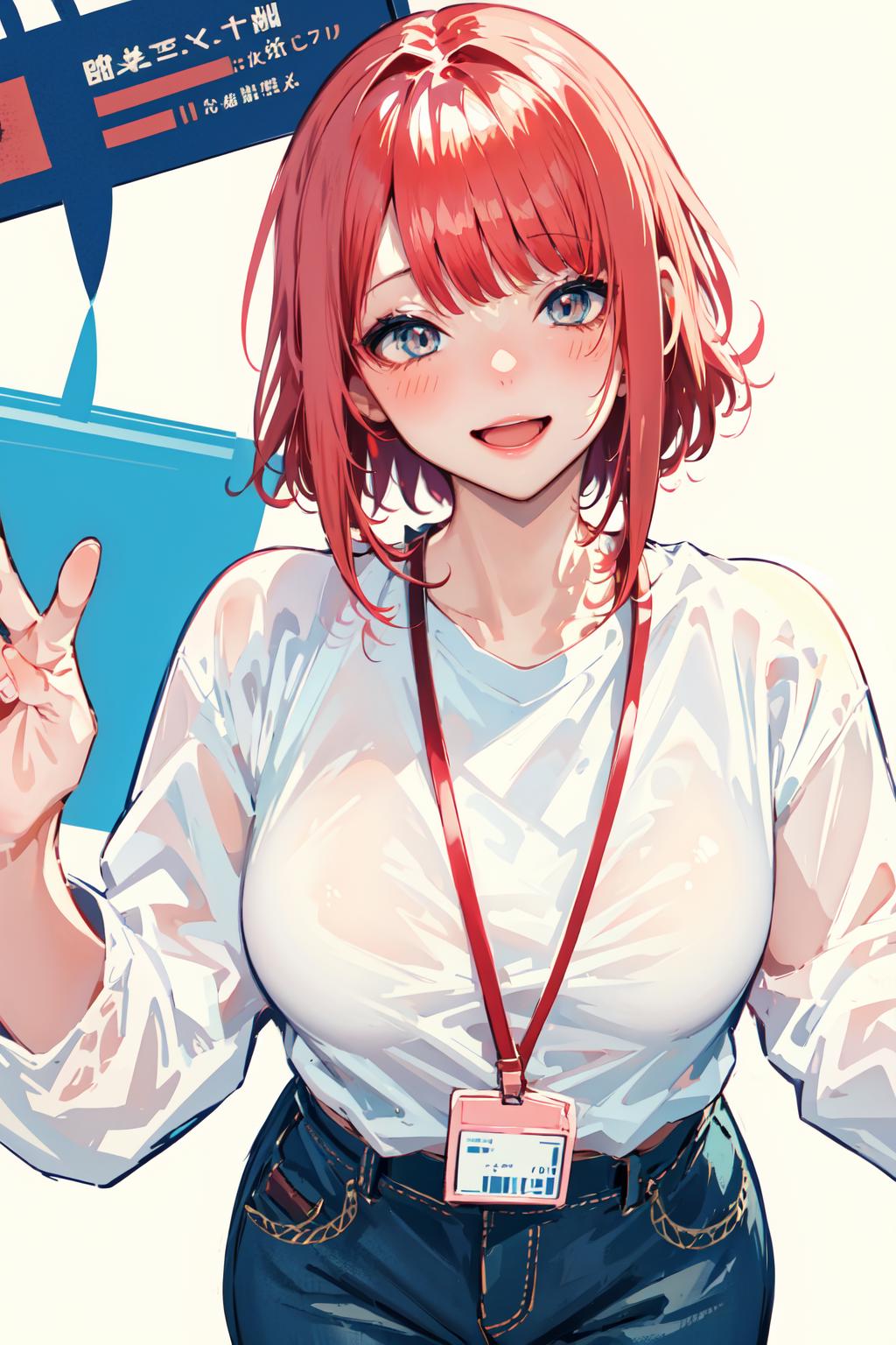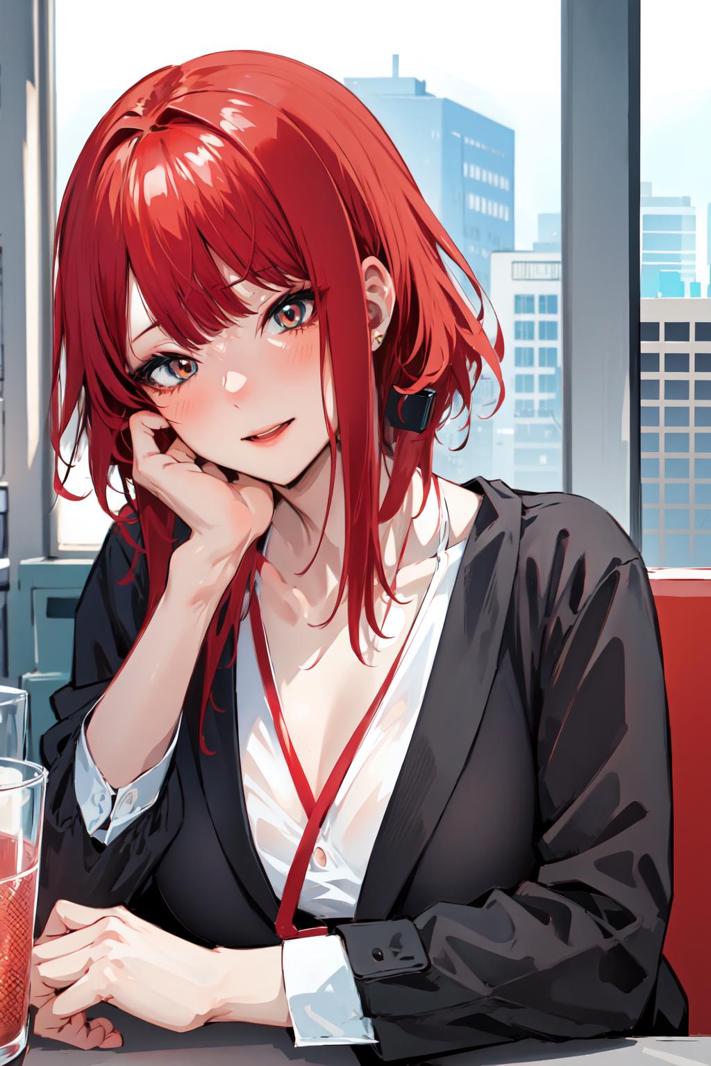 需要打出关键词Corporate girl,red hair,short hair,才行,不然出不来这个人物,头发颜色会画不对。
