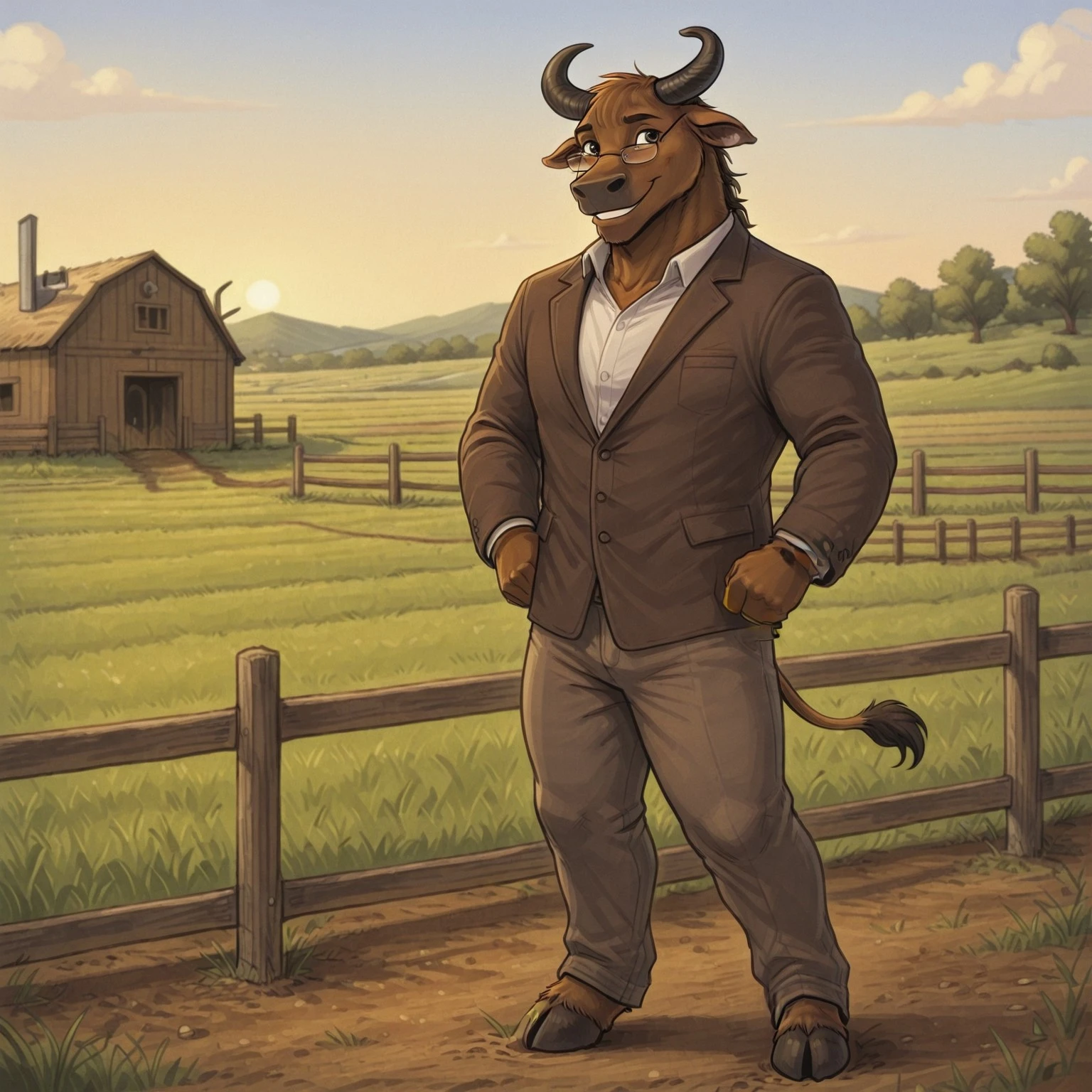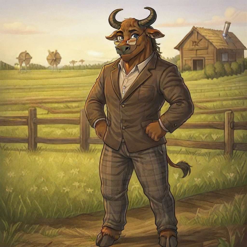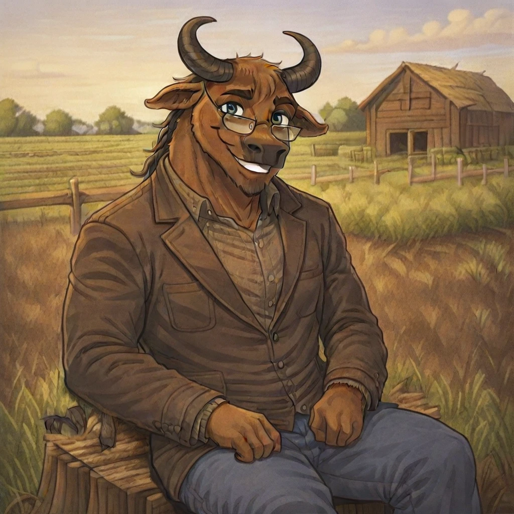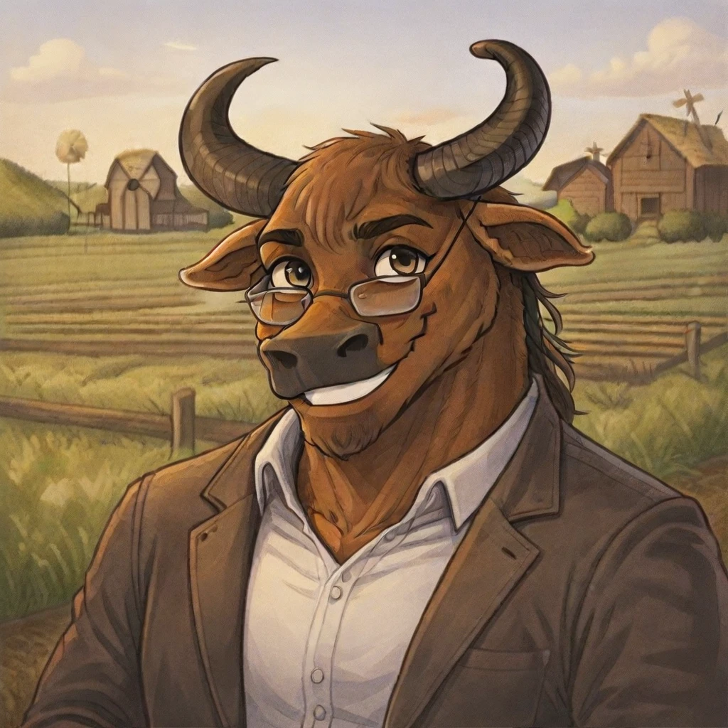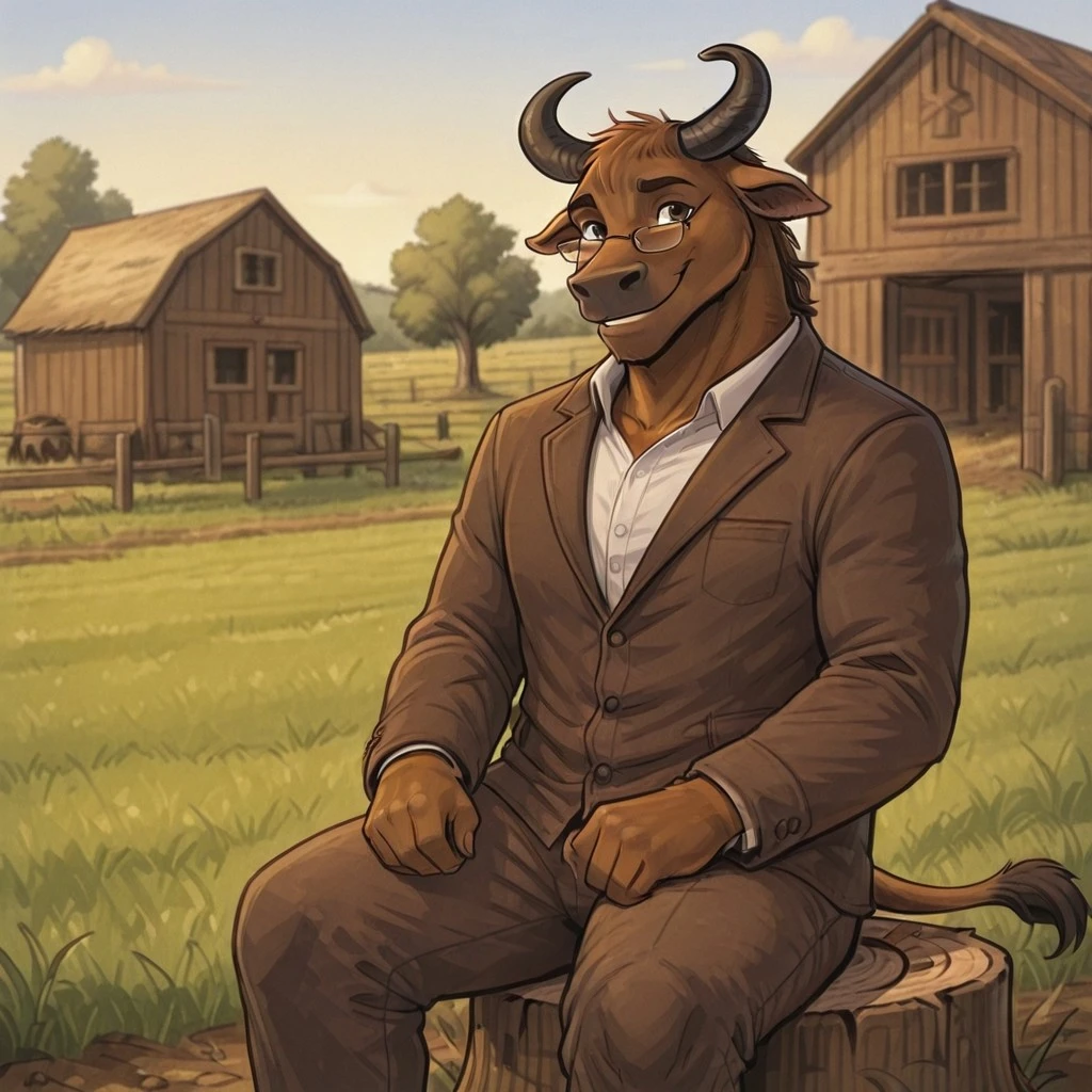 Bastion(character), male, anthro, furry, bull, Brown body, glasses,