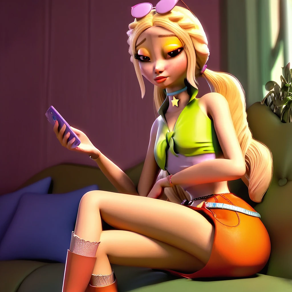 skirt, makeup, miniskirt, choker, orange skirt, lips