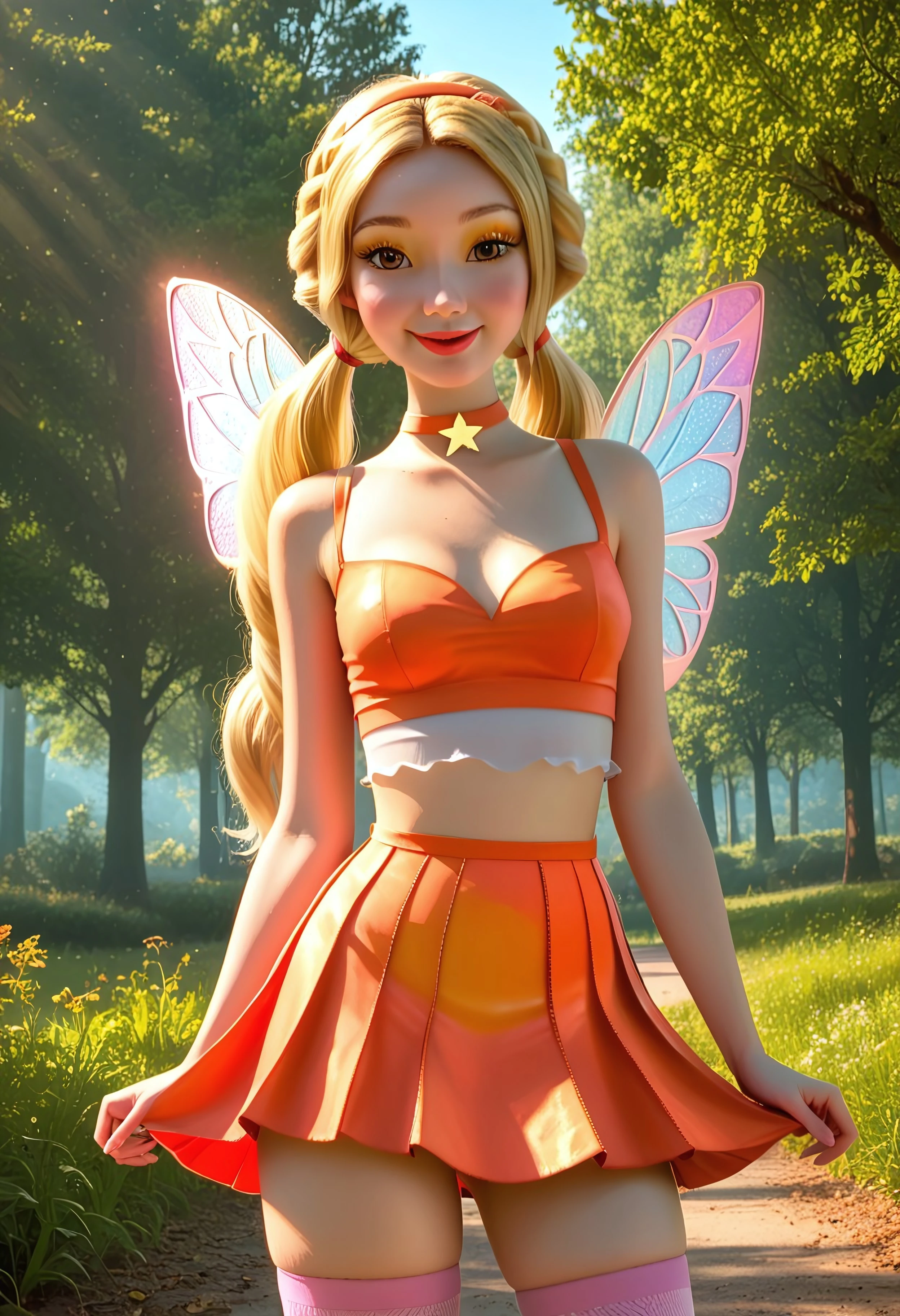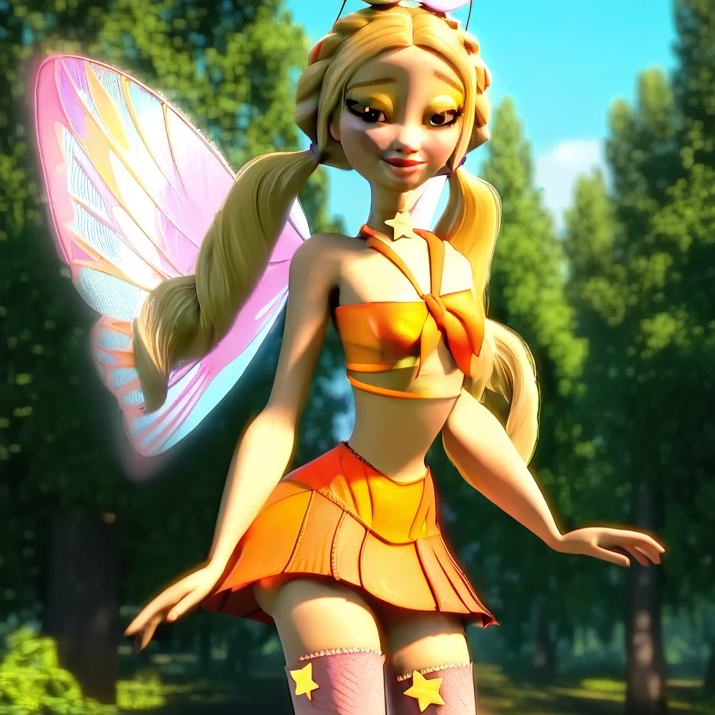 wings, skirt, thighhighs, star (symbol), fairy, hairband, fairy wings, midriff