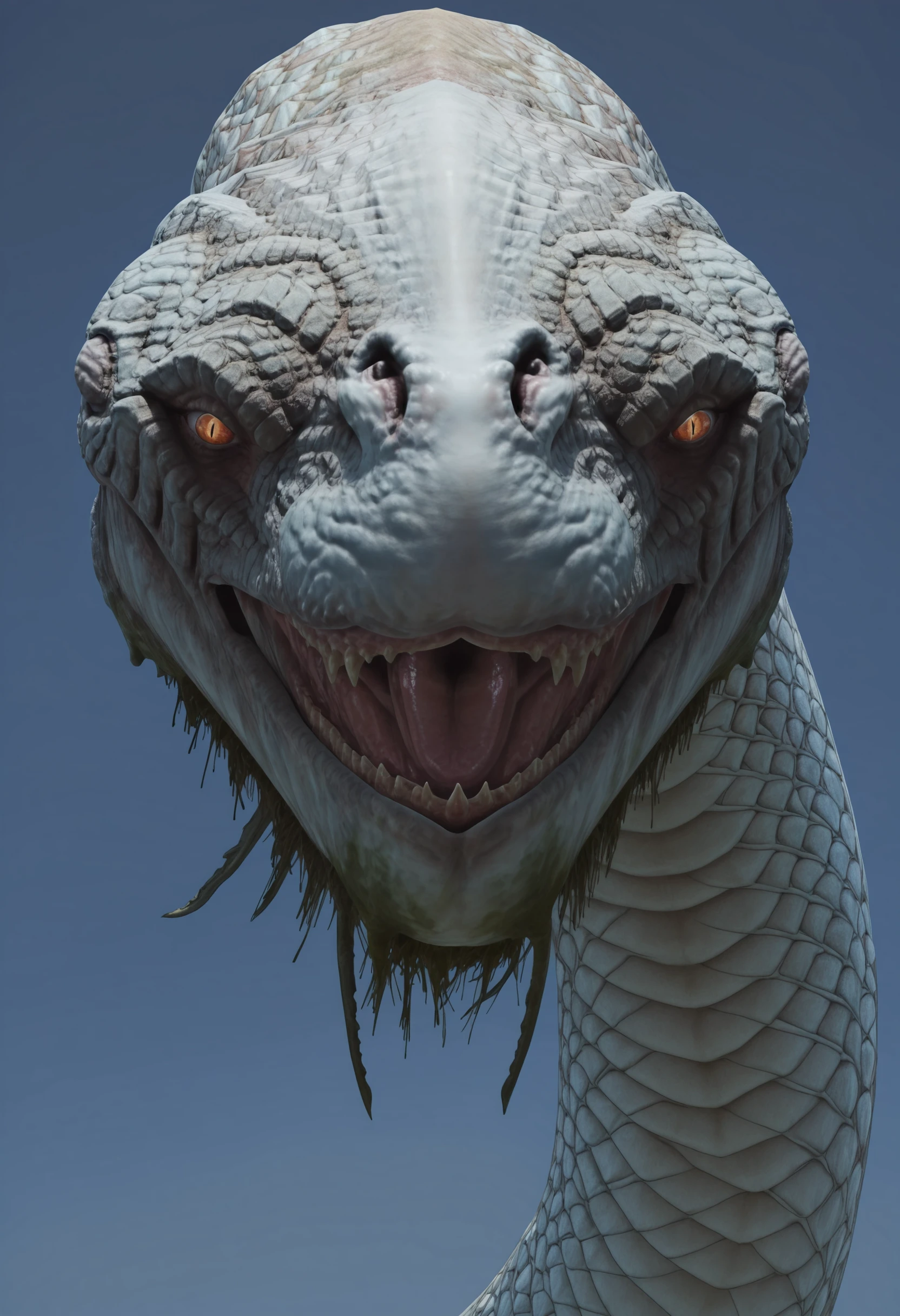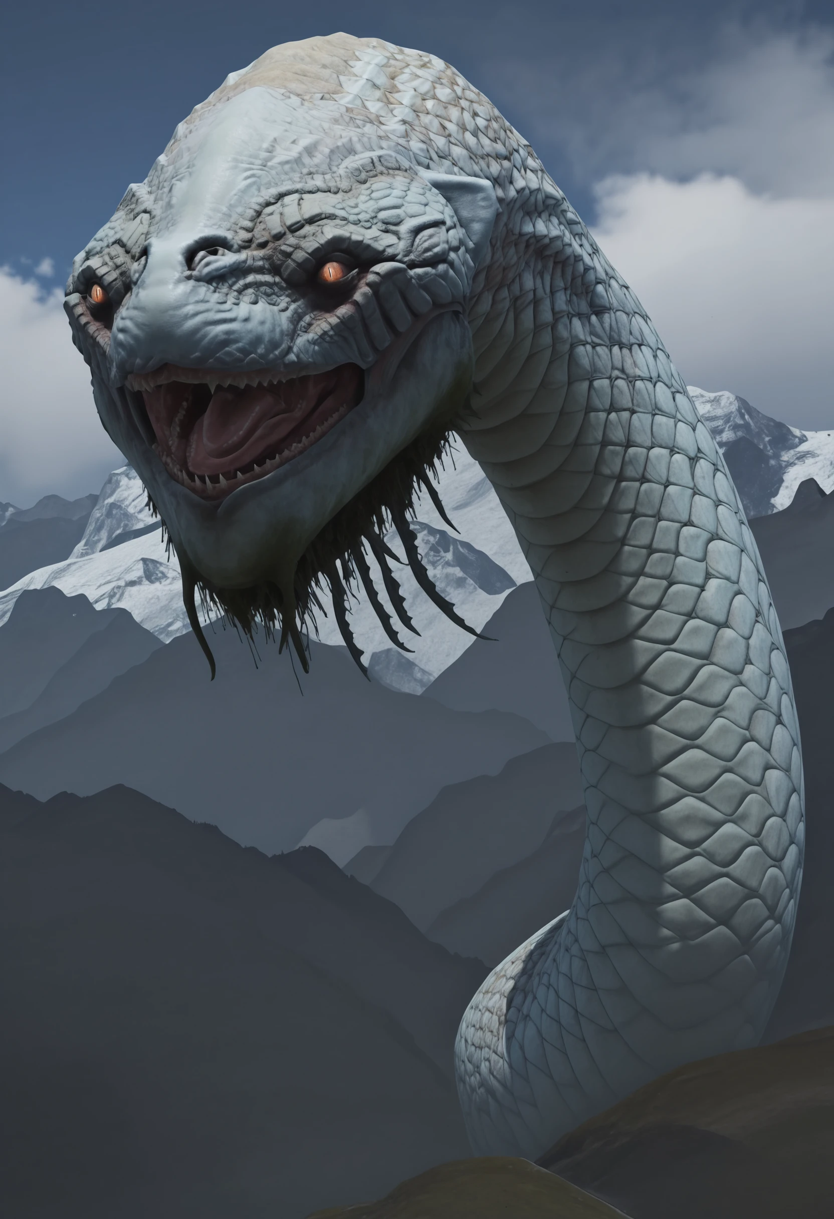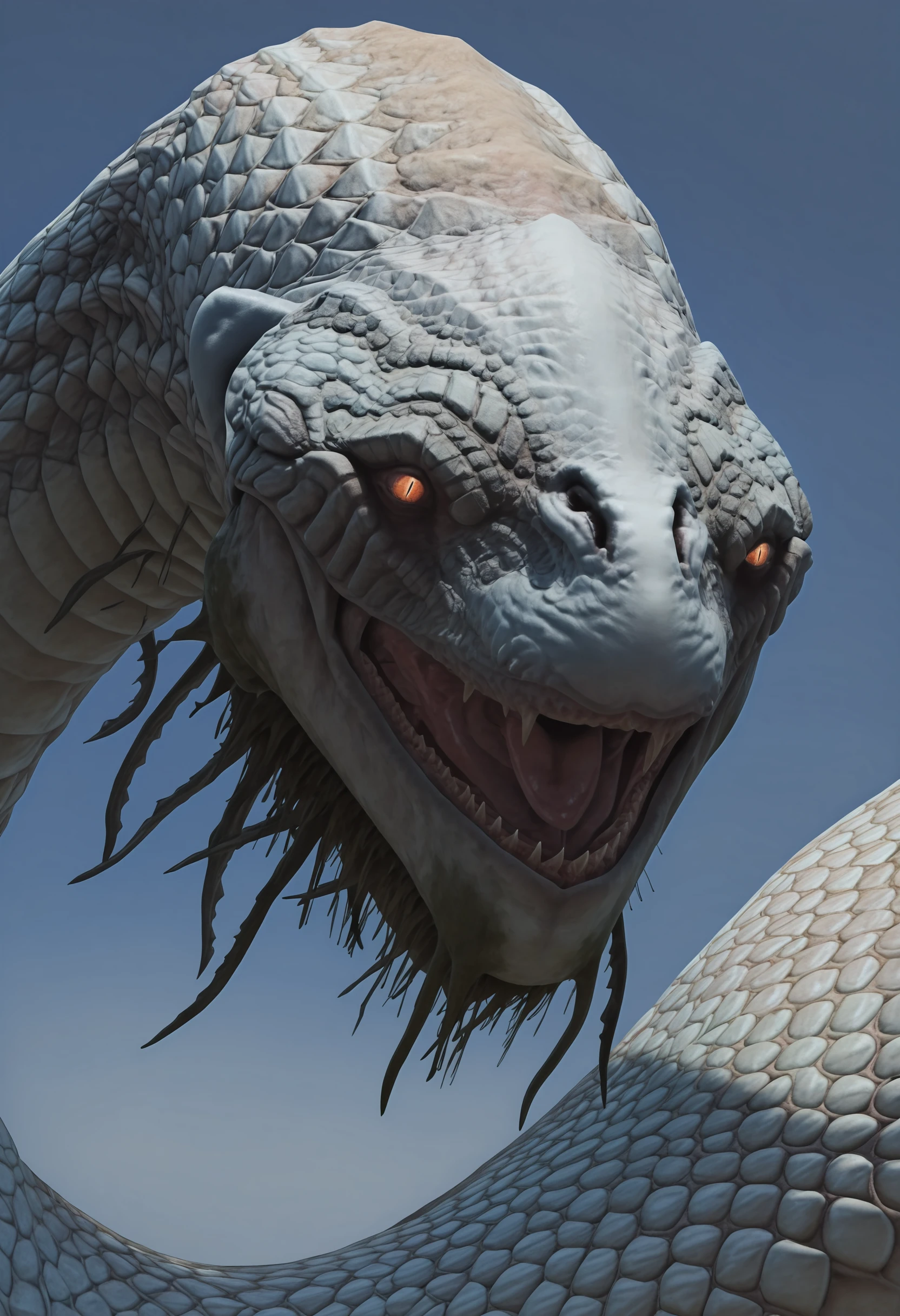 • jormuilf, monster, orange eyes, sharp teeth, snake