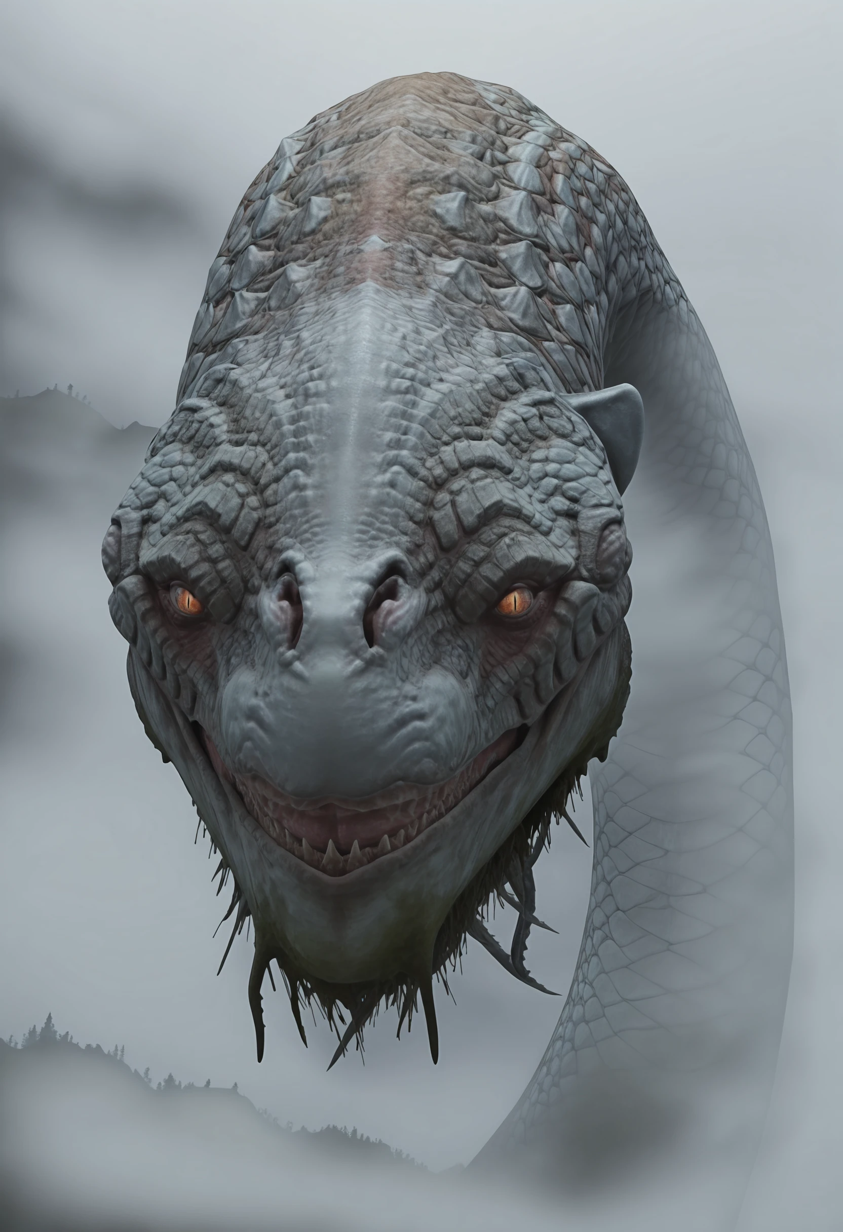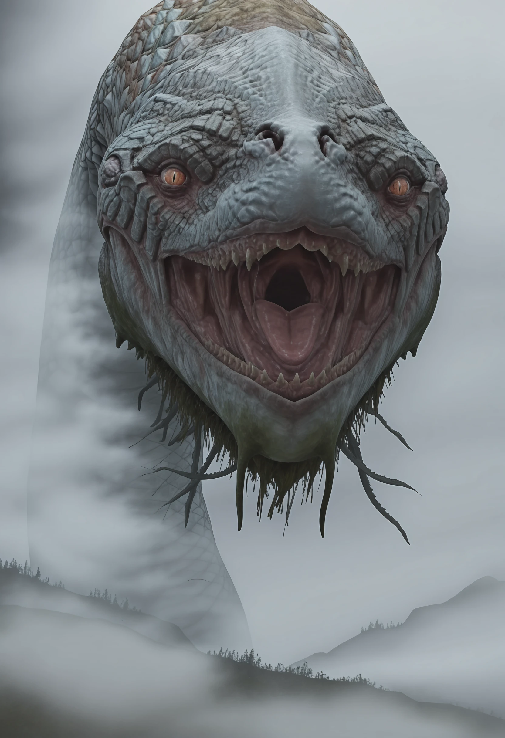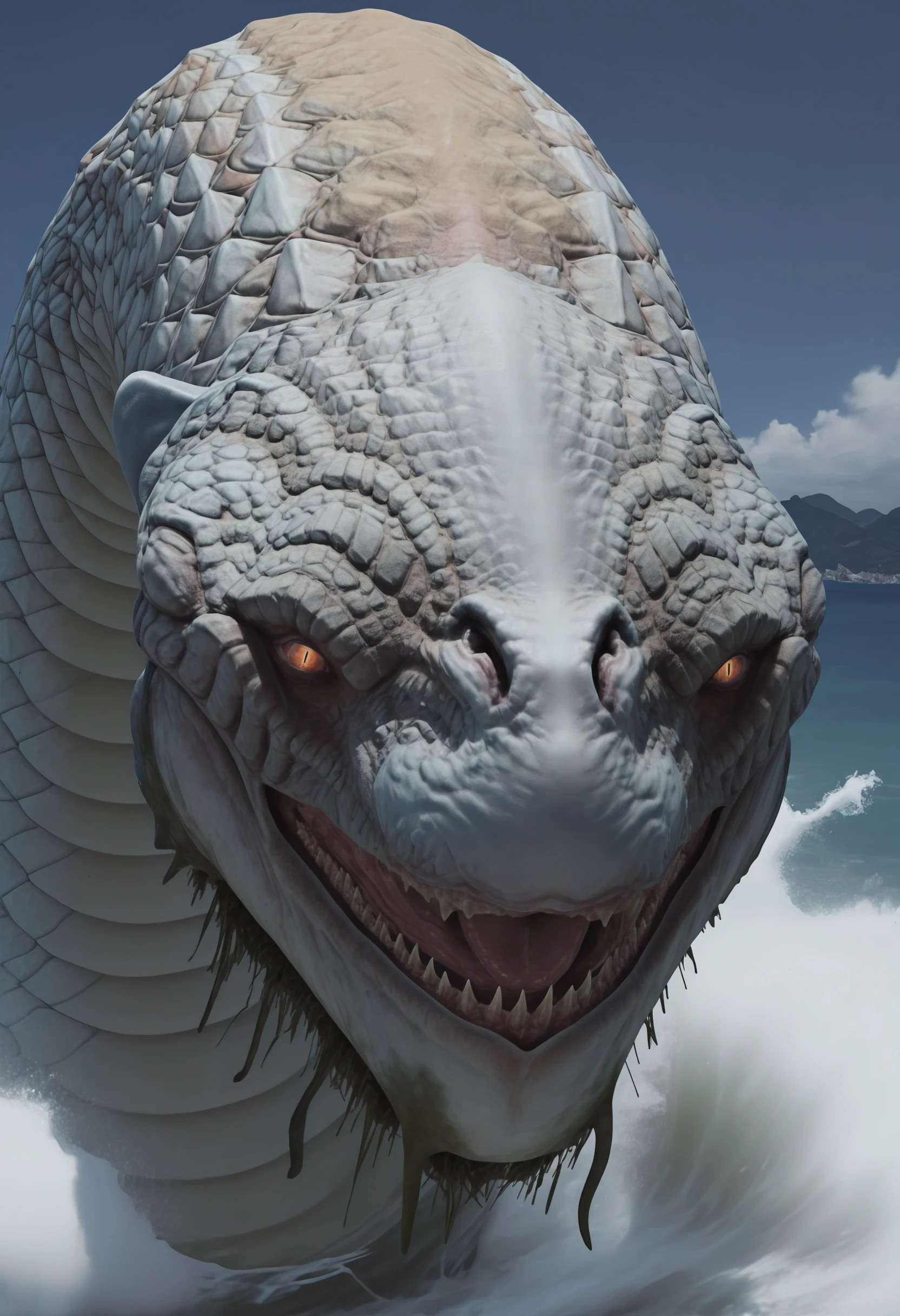 • jormuilf, monster, orange eyes, sharp teeth, snake