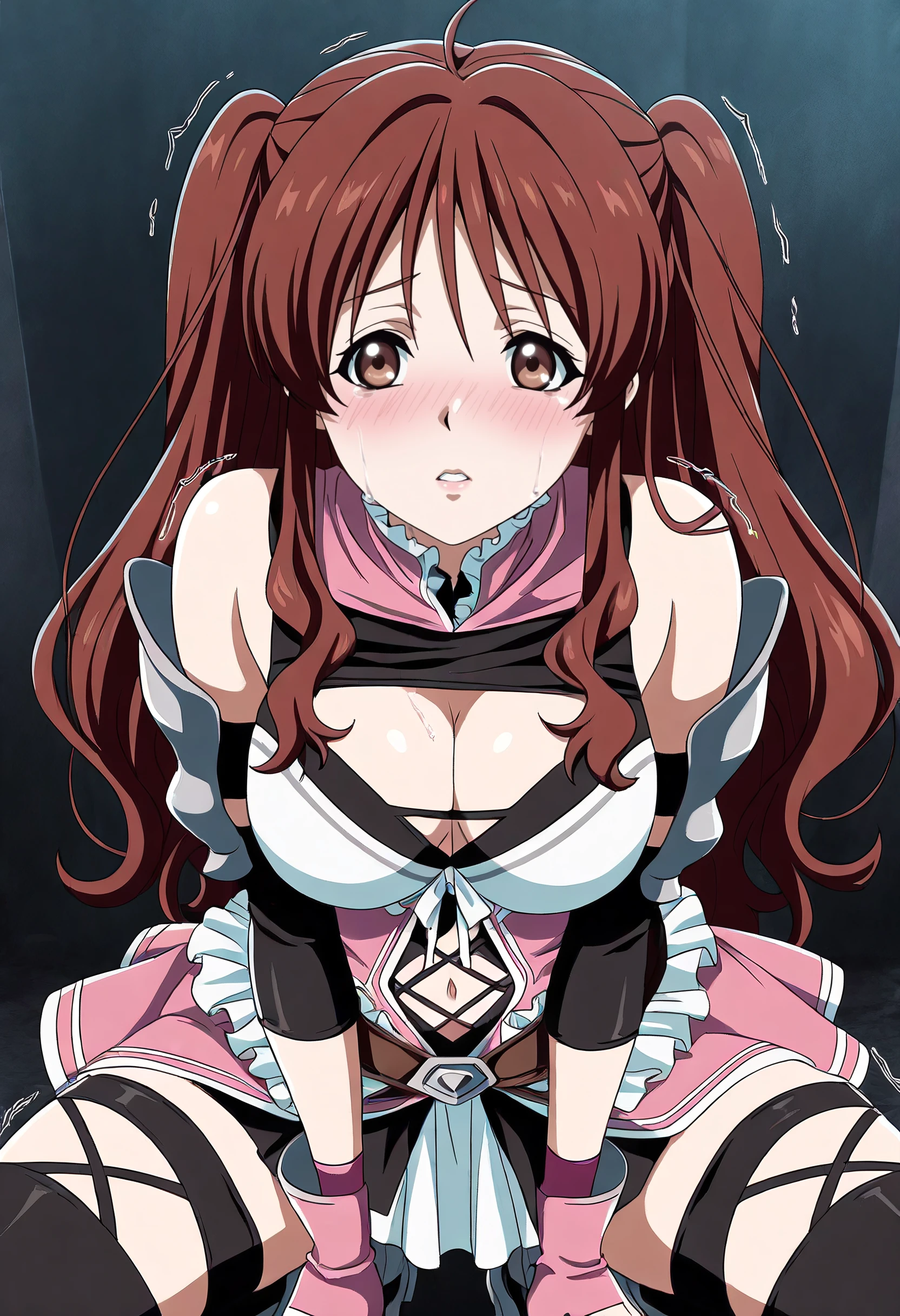 FFrKobato, long hair, brown hair, brown eyes, bangs, eyebrows visible through hair, twintails, ahoge, two side up