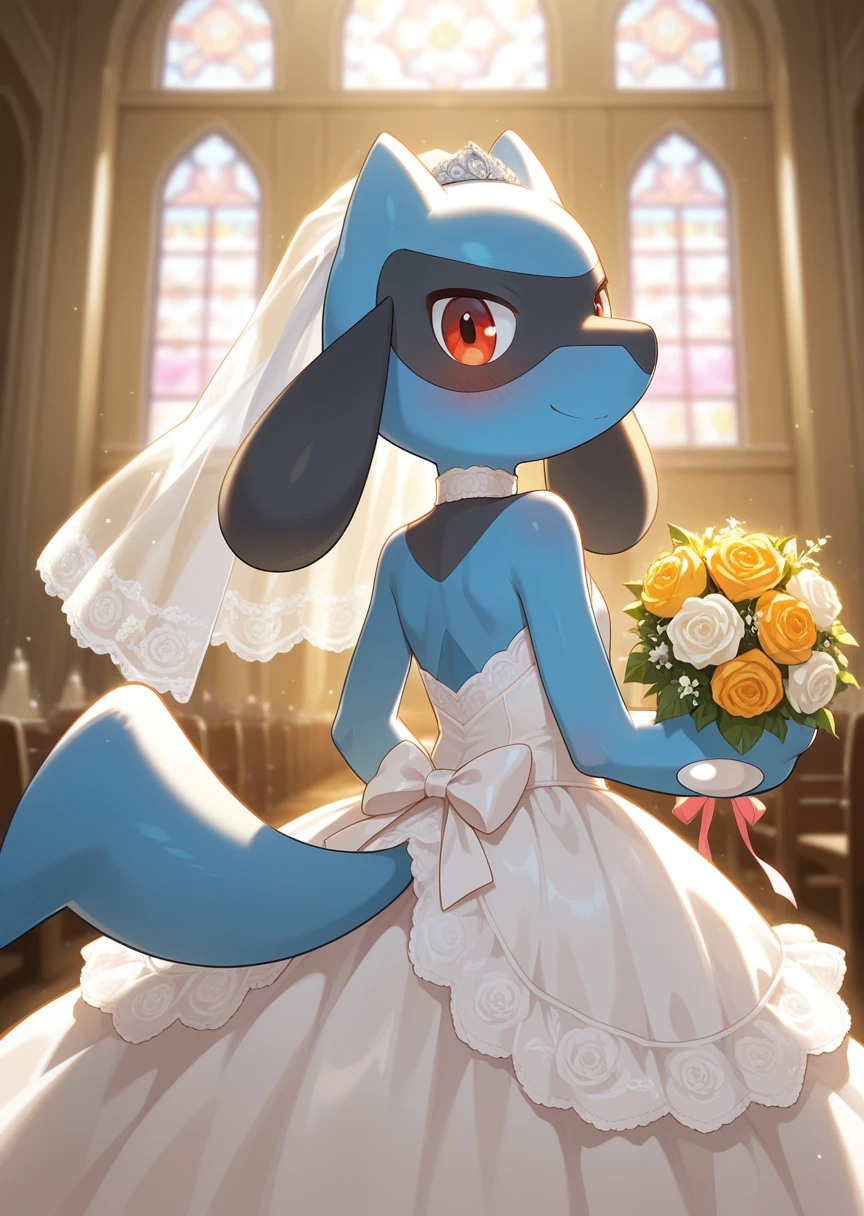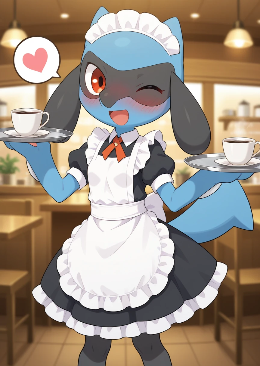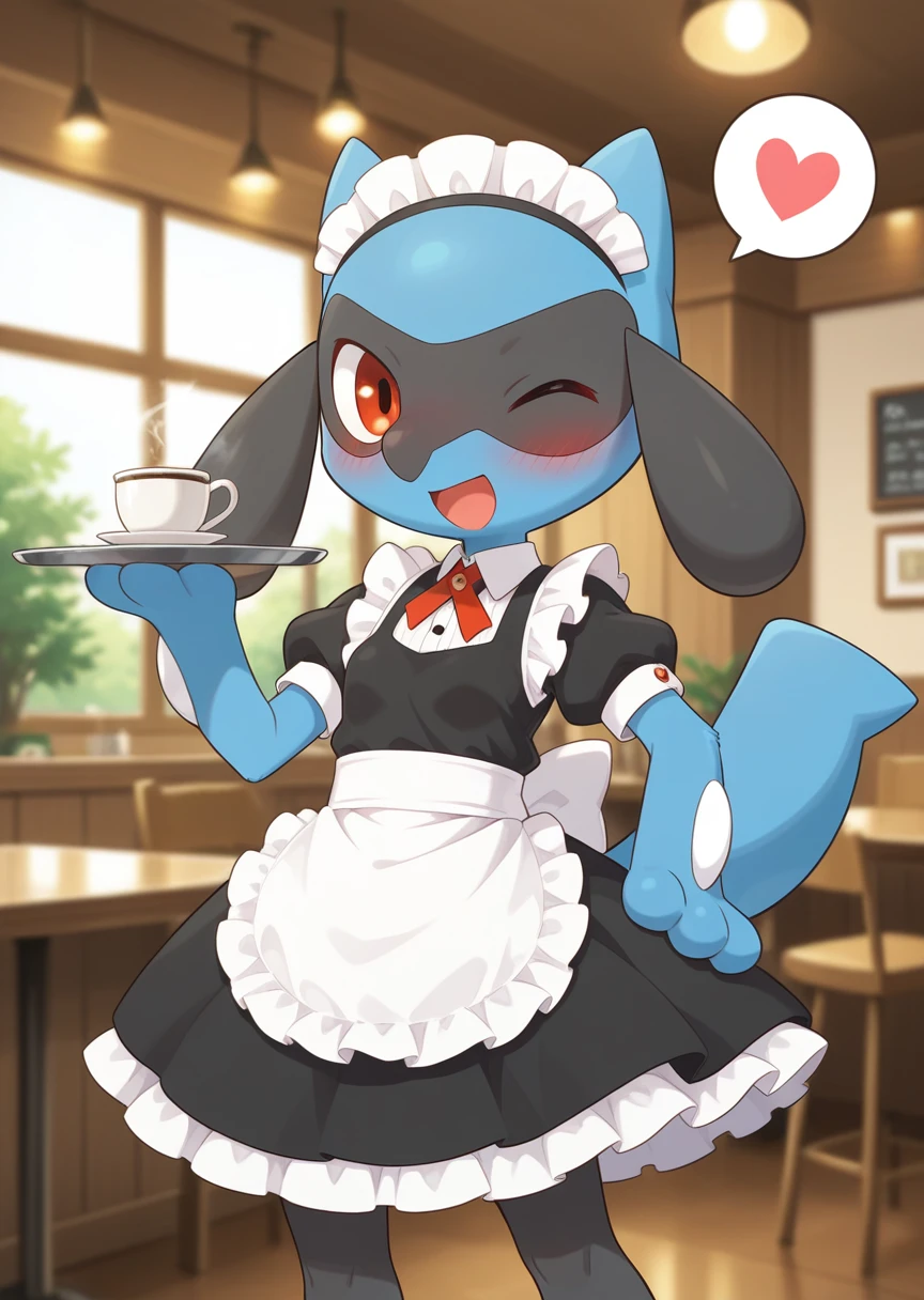 prompts: riolu, furry, red eyes, blue fur, animal ears
