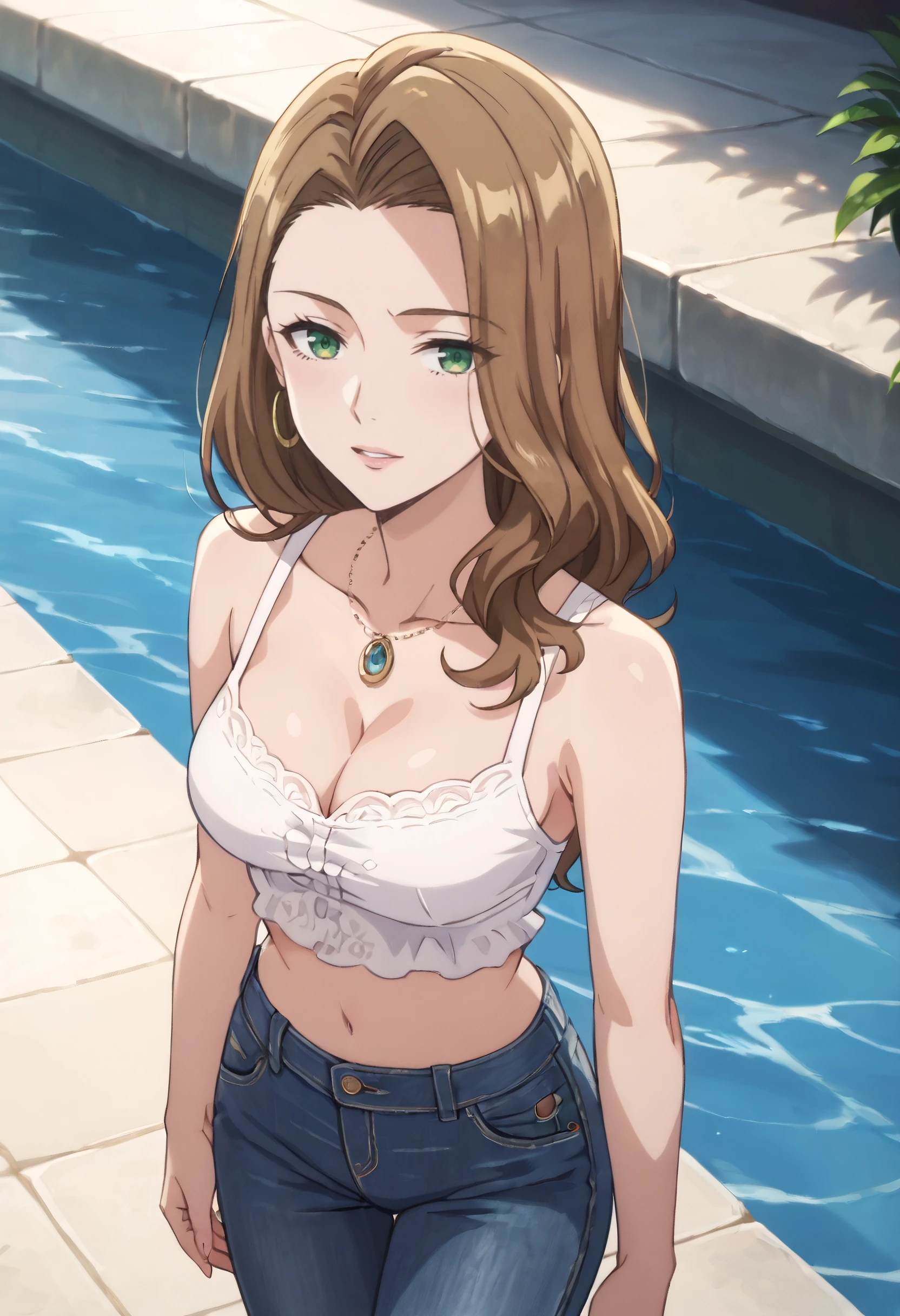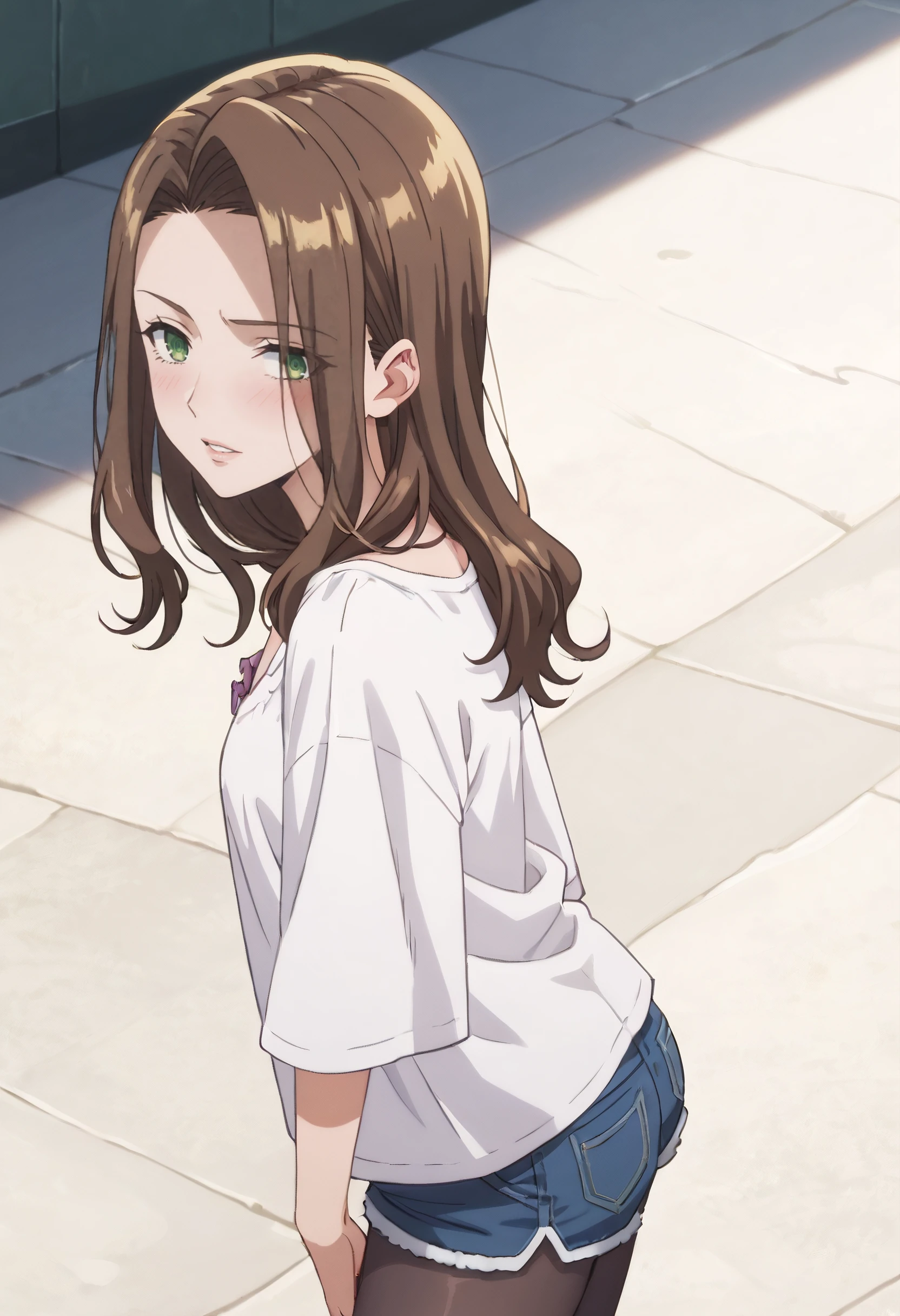 BNBDiana, long hair, green eyes, brown hair, bangs,