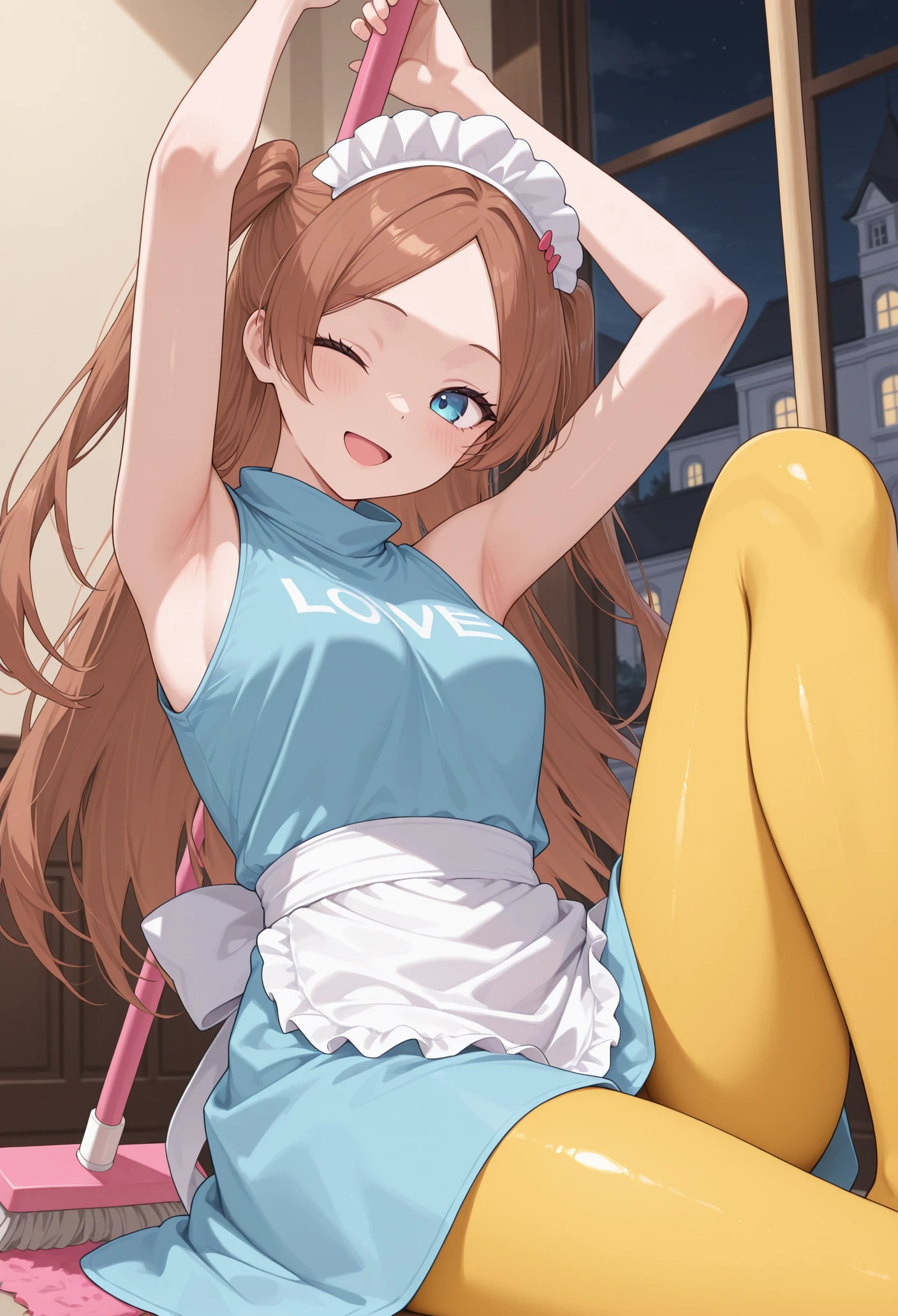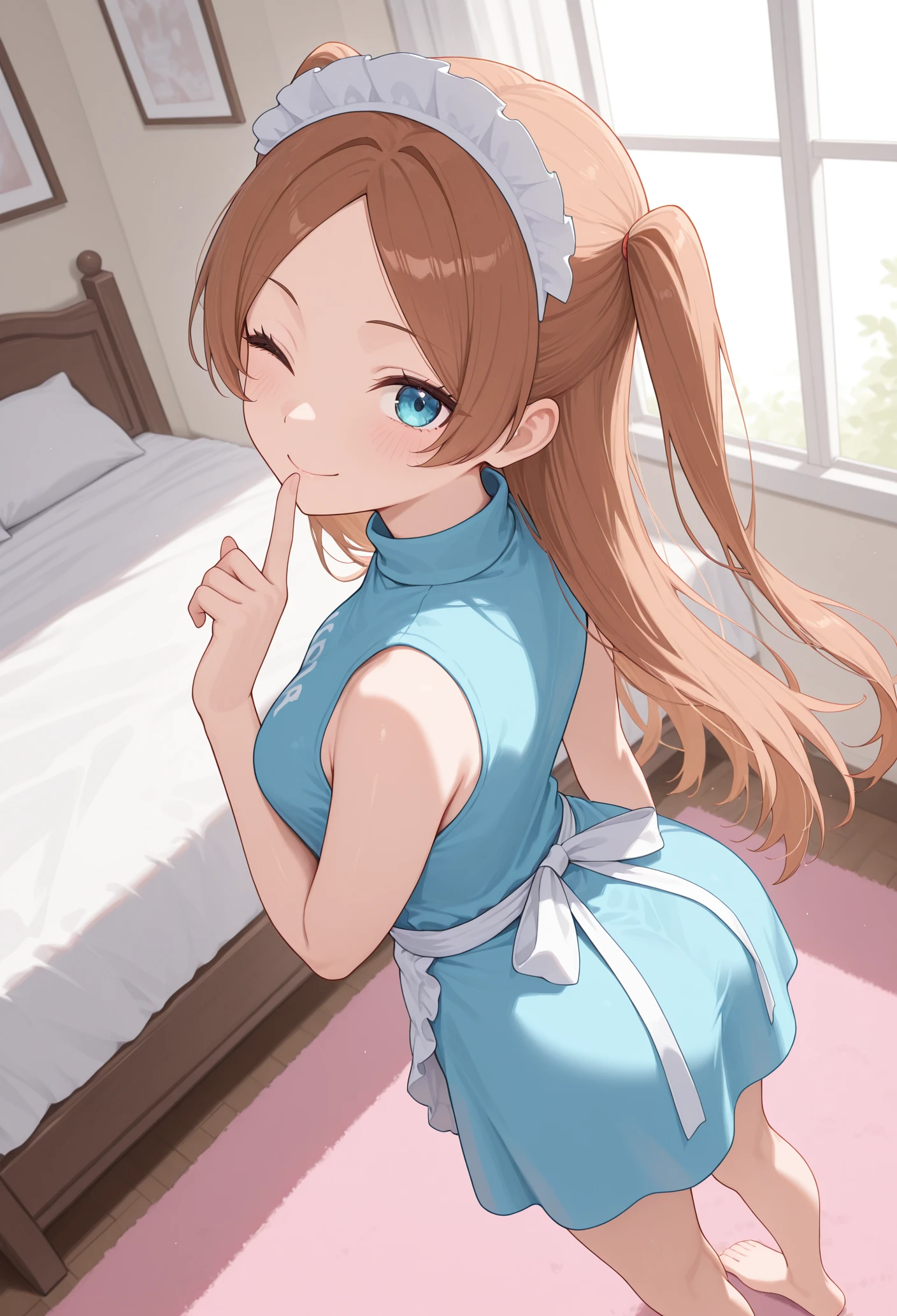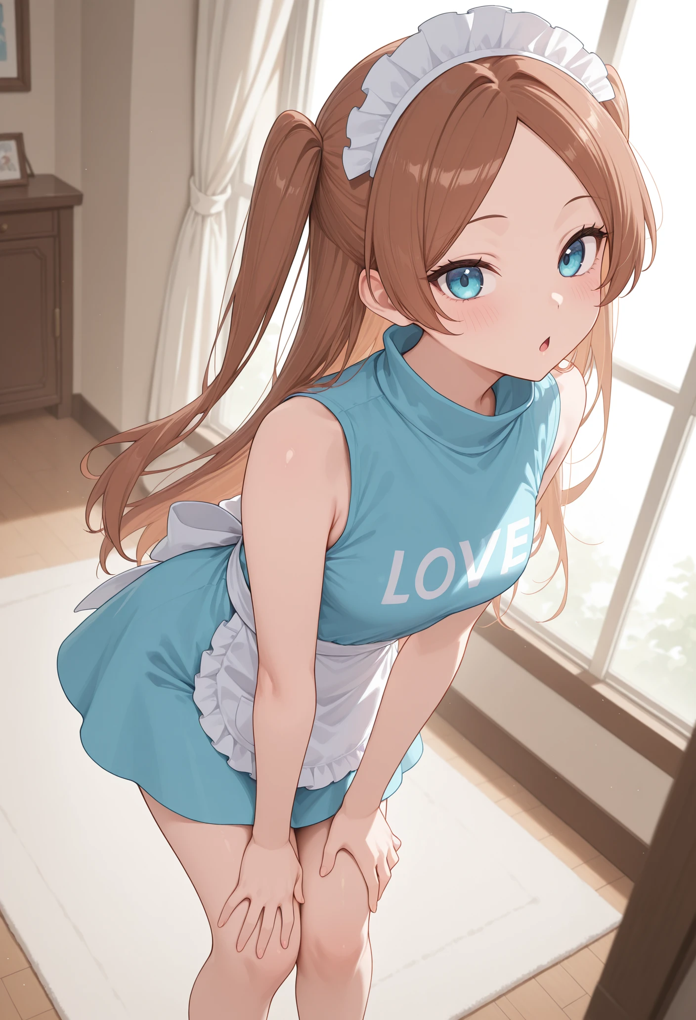 blue eyes,brown hair,long hair,parted bangs,two side up,