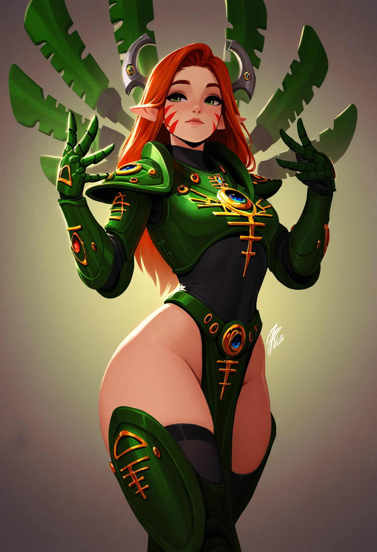 Character model based on all currently existing 52 images of Macha, an Eldar/Aeldari Farseer from Warhammer 40k videogame series Dawn of War. Most of it is the lovable goofball version we all know and love courtesy of lewdanon, but perfectly capable of doing a more seerious version too.