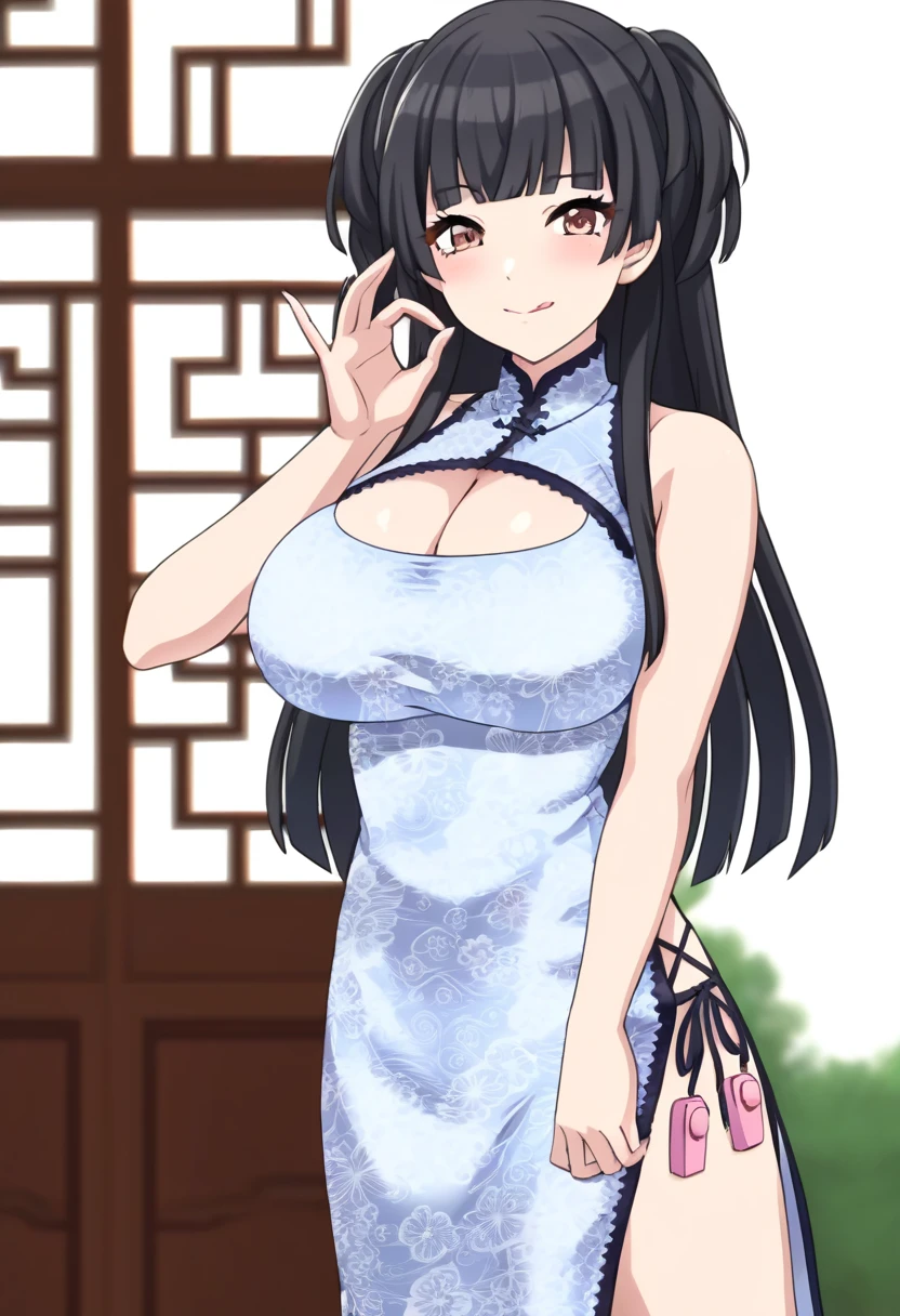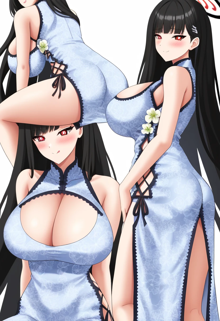 <lora:esslro_eduanllos_scthcclour_yucao24:0.8>, blue dress,chinese clothes,china dress, floral print, side slit, clothing cutout ,cleavage cutout , sleeveless, bare shoulders,cleavage,bare legs, no panties,no bra,