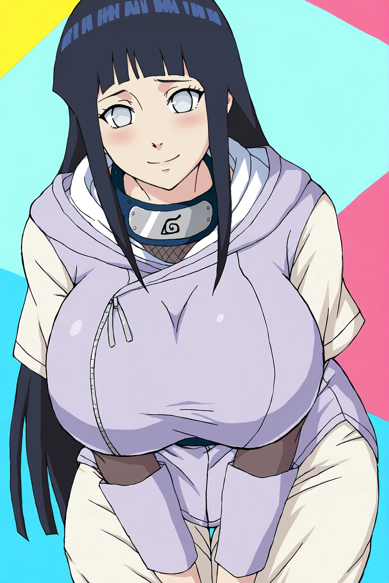 2.日向雏田(疾风传):hyuuga hinata(Shippuuden),1girl,solo,white eyes,black hair, blunt bangs,long hair,,no pupils,huge breasts/large breasts