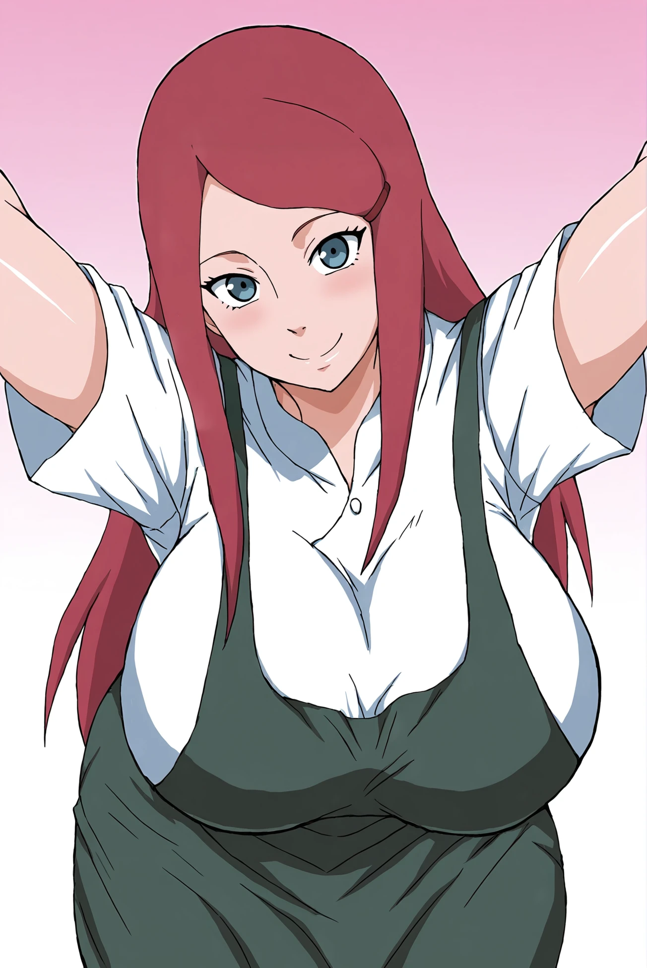 11.漩涡玖辛奈:Uzumaki Kushina,1girl,solo,hairclip, hair ornament, red hair,long hair,mature female,blue eyes,huge breasts / ponytail