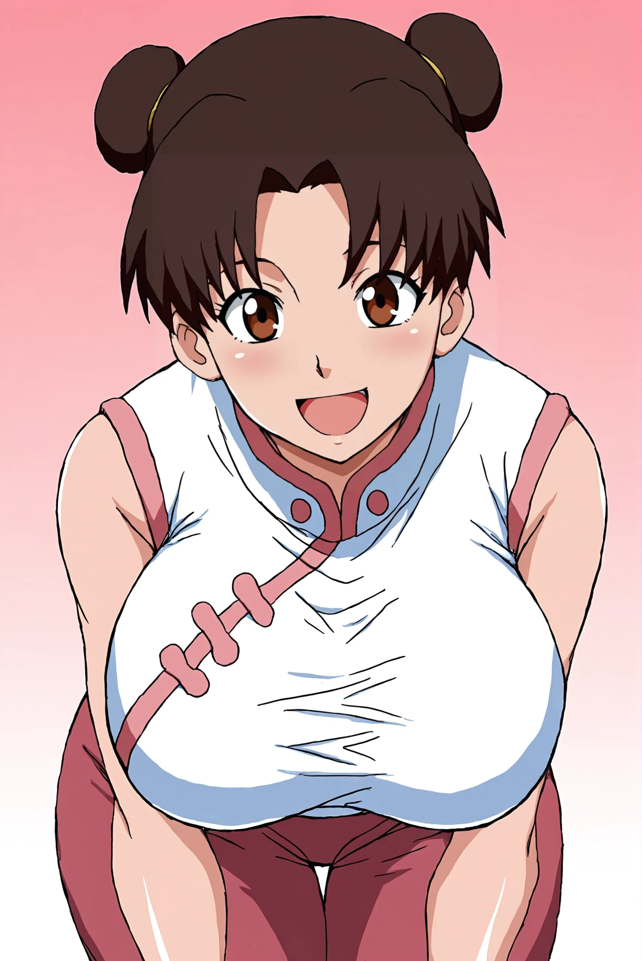 8.天天(疾风传):tenten(Shippuuden),1girl,solo,double bun,hair bun,brown hair, brown eyes,short hair,large breasts/huge breasts