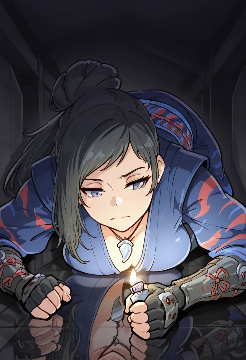 black hair, long hair, single hair bun, ponytail,