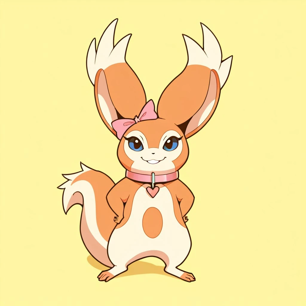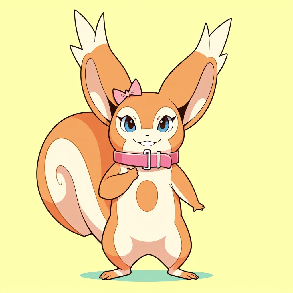 rodent, squirrel, squirrel girl, blue eyes, black nose, big squirrel ears, squirrel tail, hairbow, collar