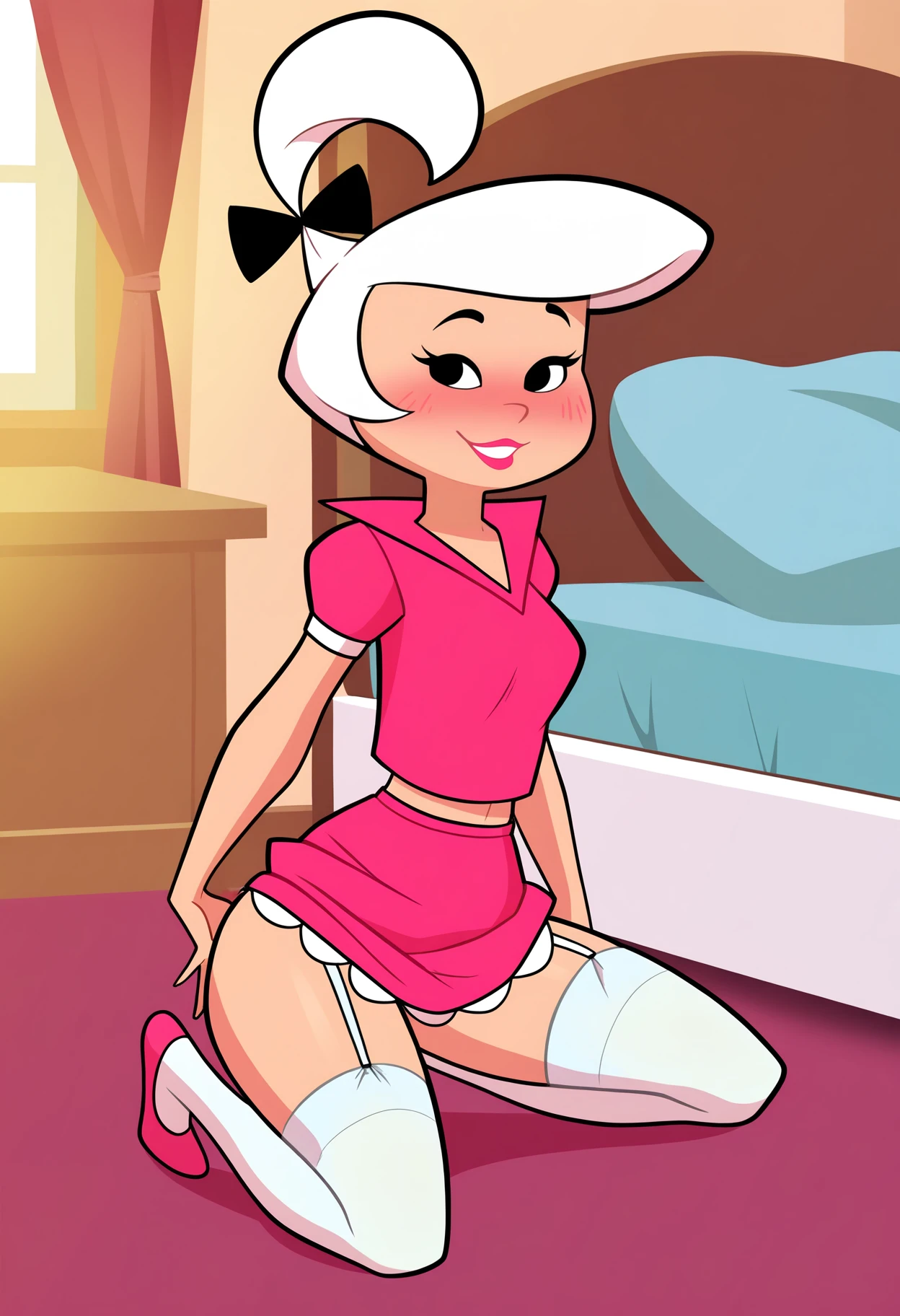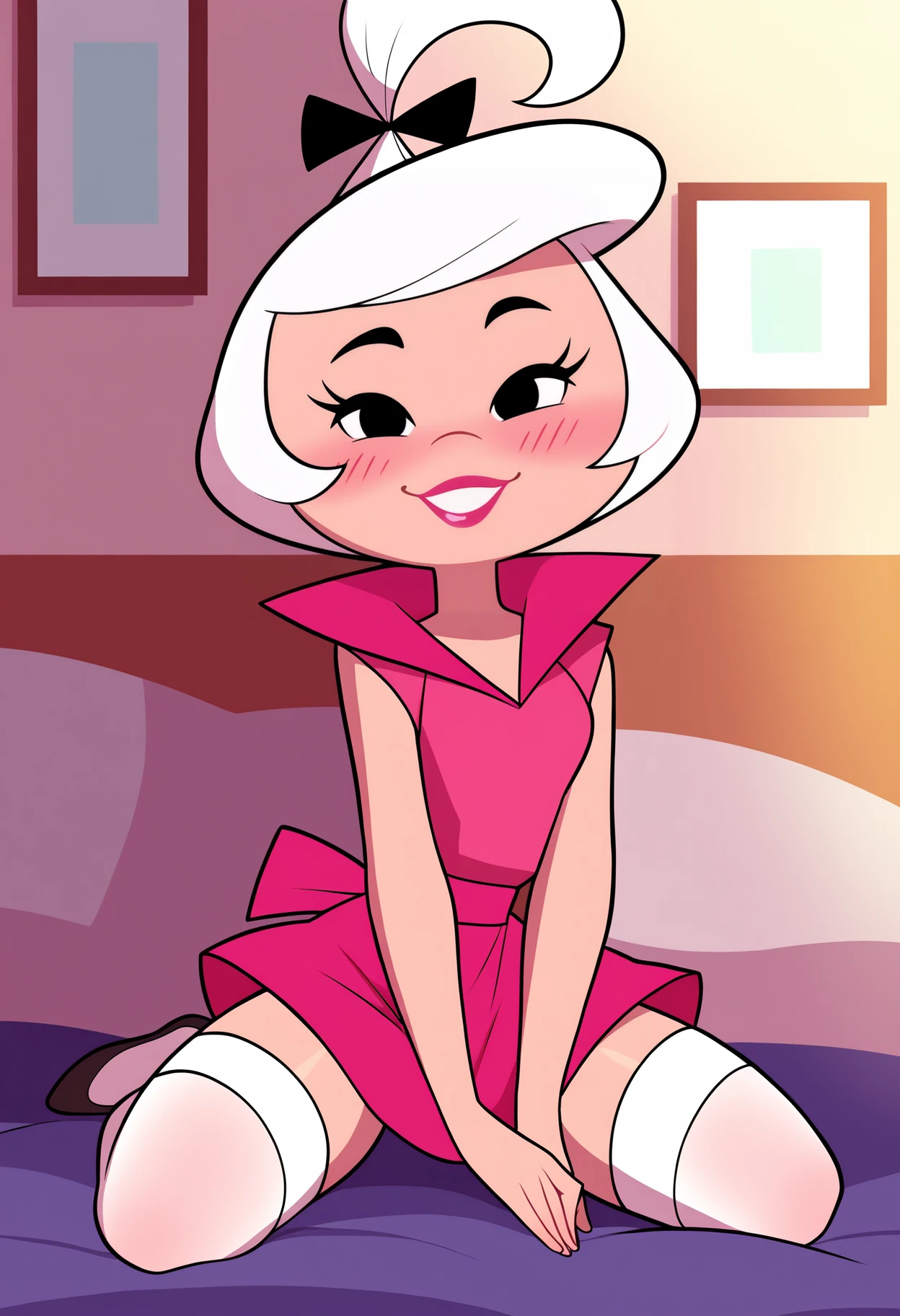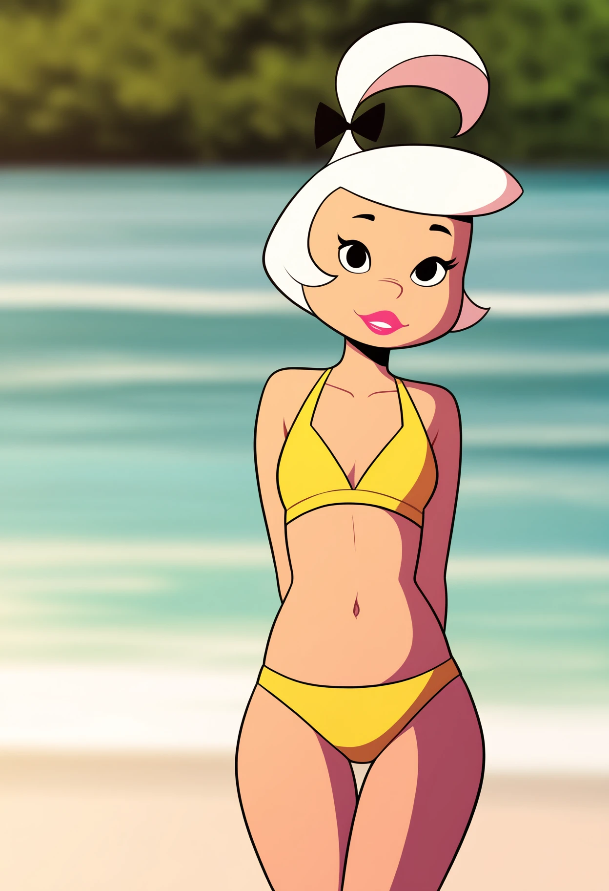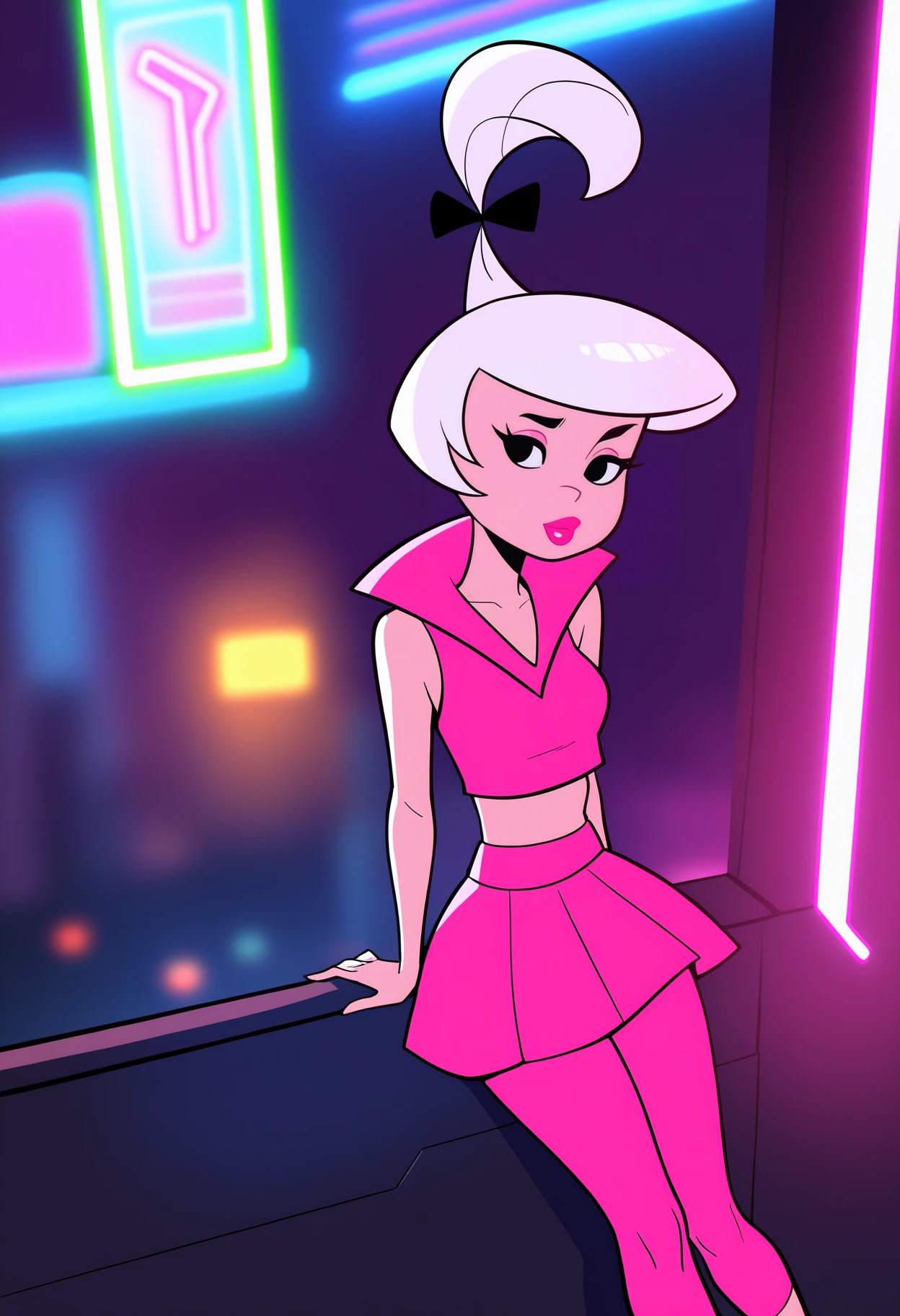 Basic prompts : 1girl, judy, white hair, black eyes, lipstick, black hair bow, topknot